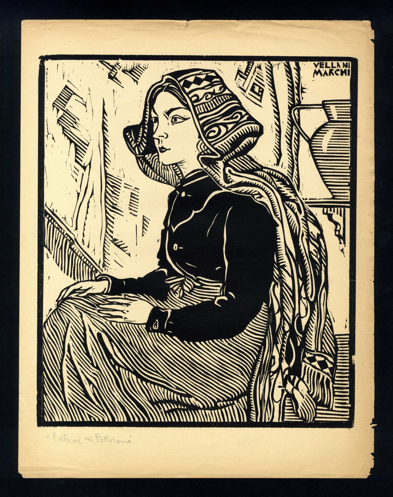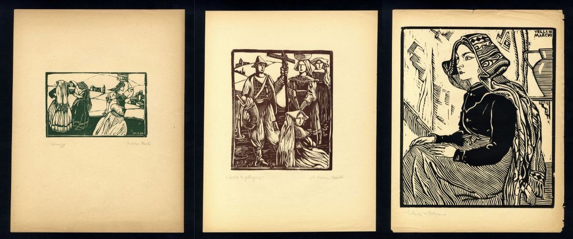 lotto di 3 xilografie, cm 23,5 x 30,5 e cm 25 x 32 (Costume di Pettorano). Esemplari in perfetto stato di conservazione, salvo qualche strappetto ai bordi di "Costume di Pettorano".