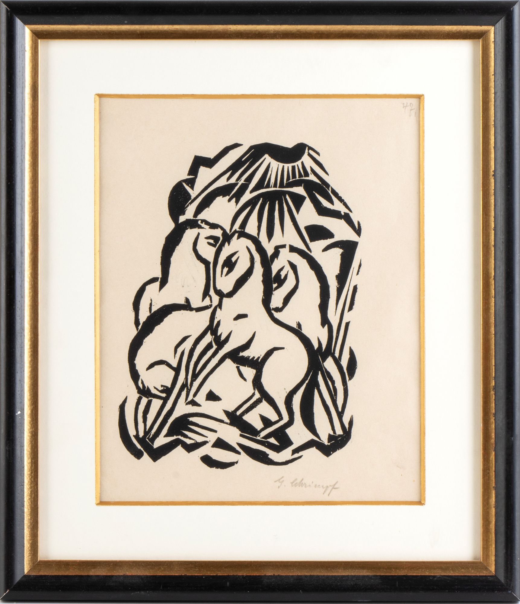 xilografia su carta, 21 x 15,5 cm (lastra). Firmata a matita in basso a destra. Ottime condizioni. Con passepartout, cornice e vetro (38 x 34 x 2 cm). La stampa non è stata esaminata fuori della cornice.