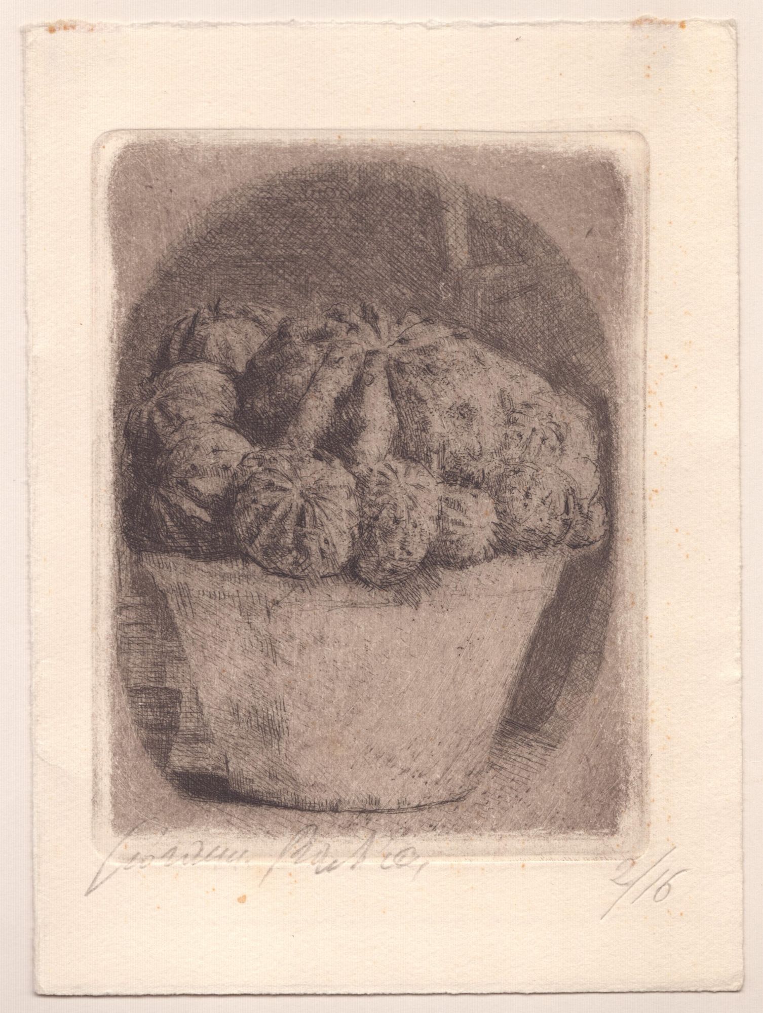 d. Vaso con succulente, acquaforte, 129 x 99 mm (lastra), 172 x 121 mm (foglio), bella impressione su cartoncino, firmata a matita Giovanni Barbisan, tiratura 2/16