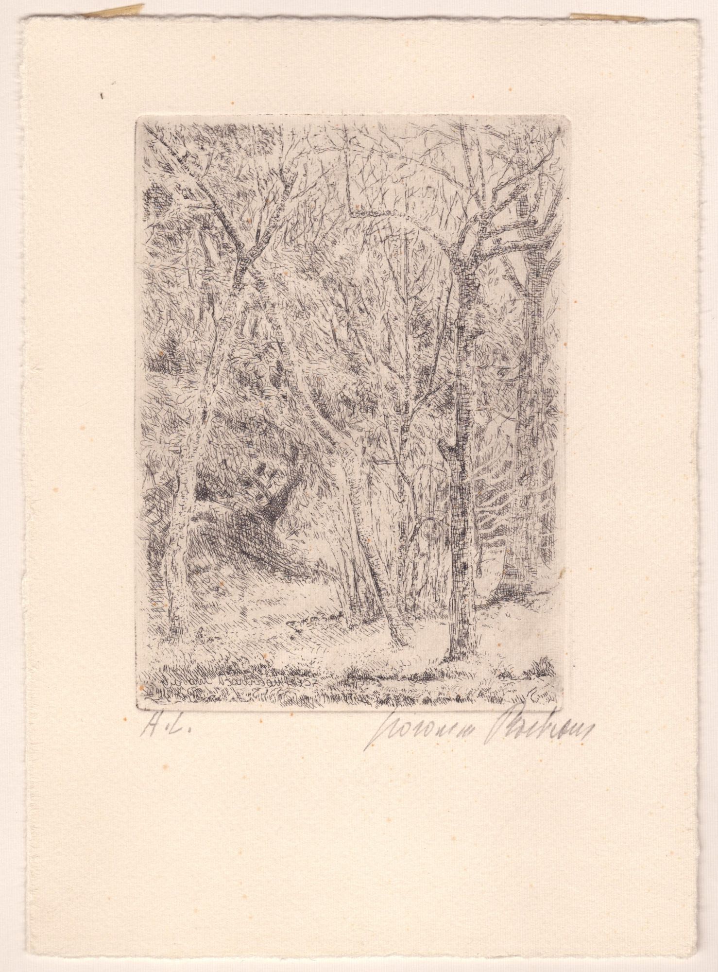 d. Bosco, acquaforte, 109 x 78 mm (lastra), bella impressione su cartoncino, firmata a matita, in basso a sinistra: A. L.