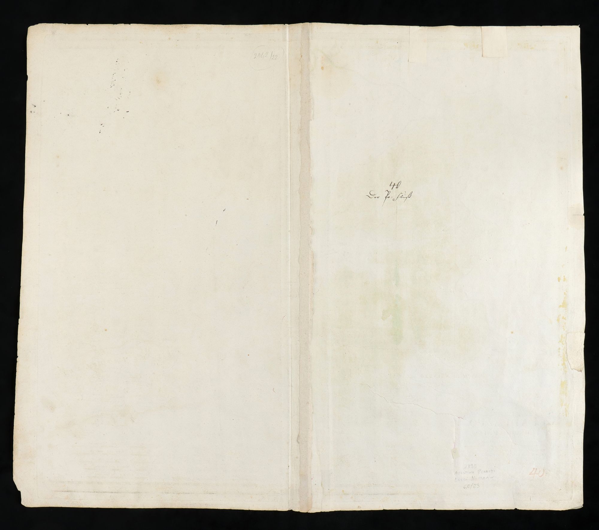 bulino e acquaforte, 54,5 x 63,5 cm. Parte di una grande mappe pubblicata dagli eredi di Johann Baptist Homann, raffigurante il corso del fiume Po nella Lombardia, tratta da Atlas compendiarius. Stampata su due fogli uniti di carta vergata. Foglio con leggera ossidazione e qualche breve strappo restaurato al verso. In generale in buono stato.