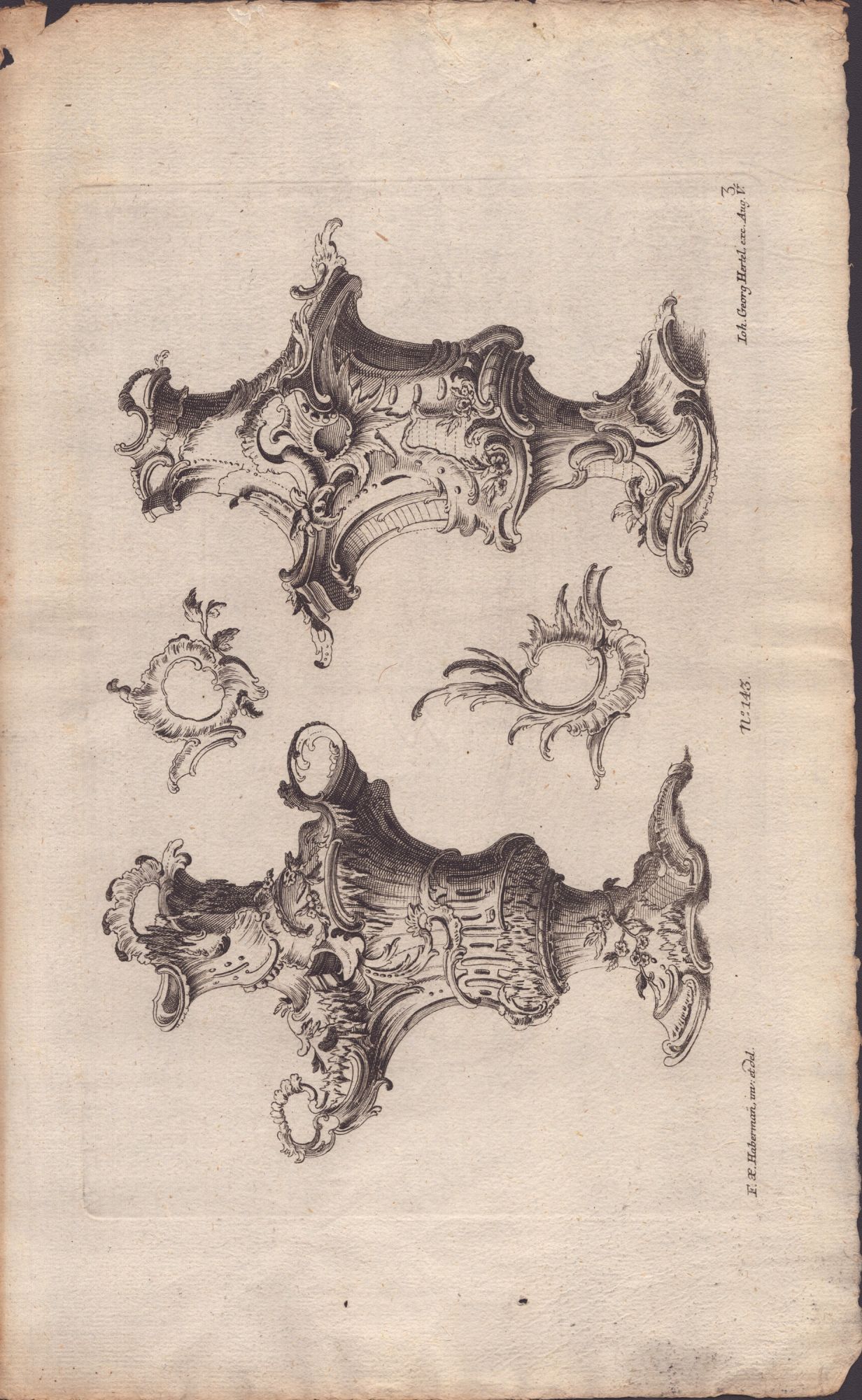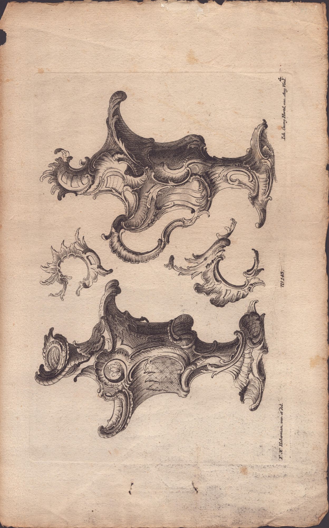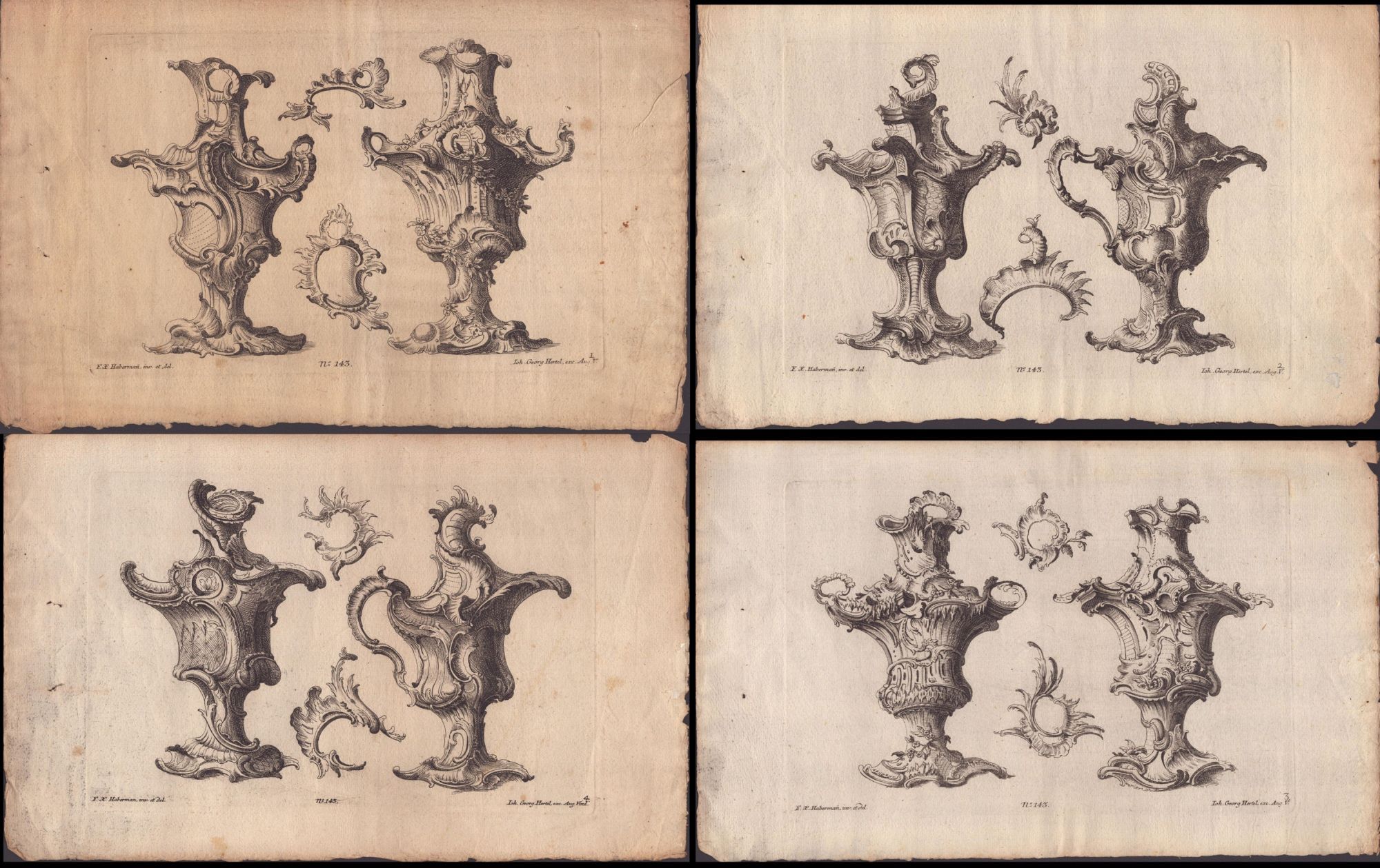 Franz Xaver Habermann (1721 - 1796) 4 incisioni con vasi decorati con rocaille