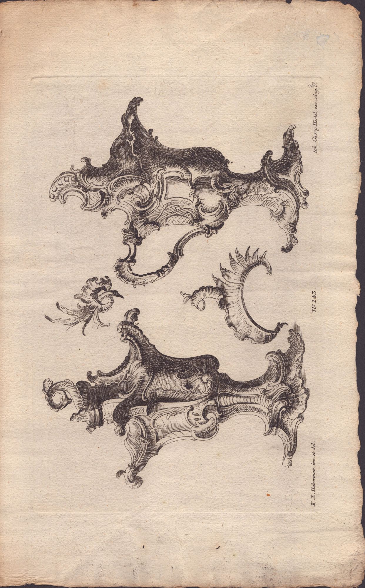acquaforte, 254 x 410 mm, pubblicate da Franz Xaver Habermann, stampate su carte vergate con filigrane (tre con fleur-de-lis, una con le lettere "IHW"), fogli in buone condizioni generali con alcune macchie e qualche ossidazione