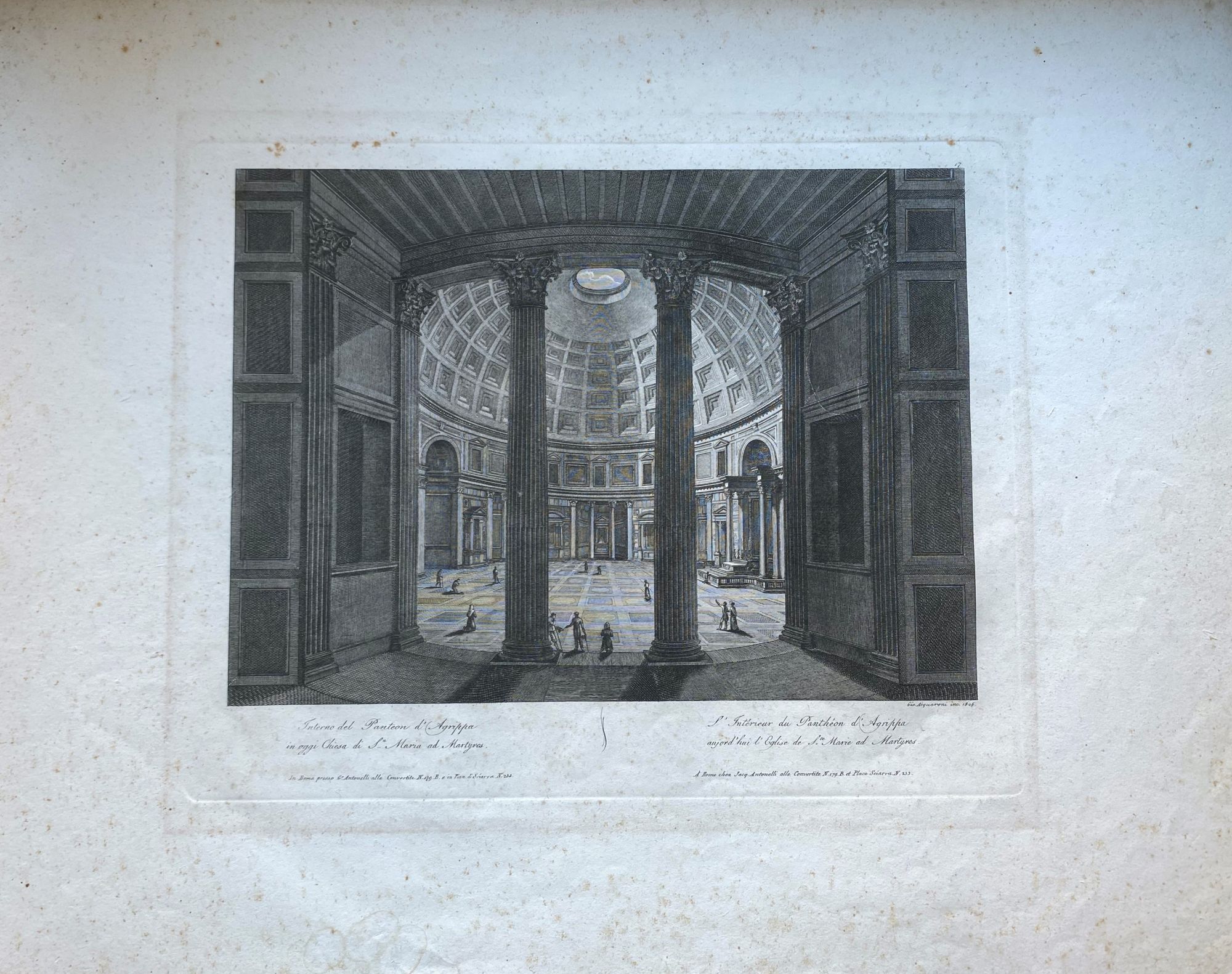Giovanni Acquaroni, Veduta interna del Pantheon, 1826. Bulino e acquaforte, 42 x 56 cm. Buone condizioni, segni di fioritura.