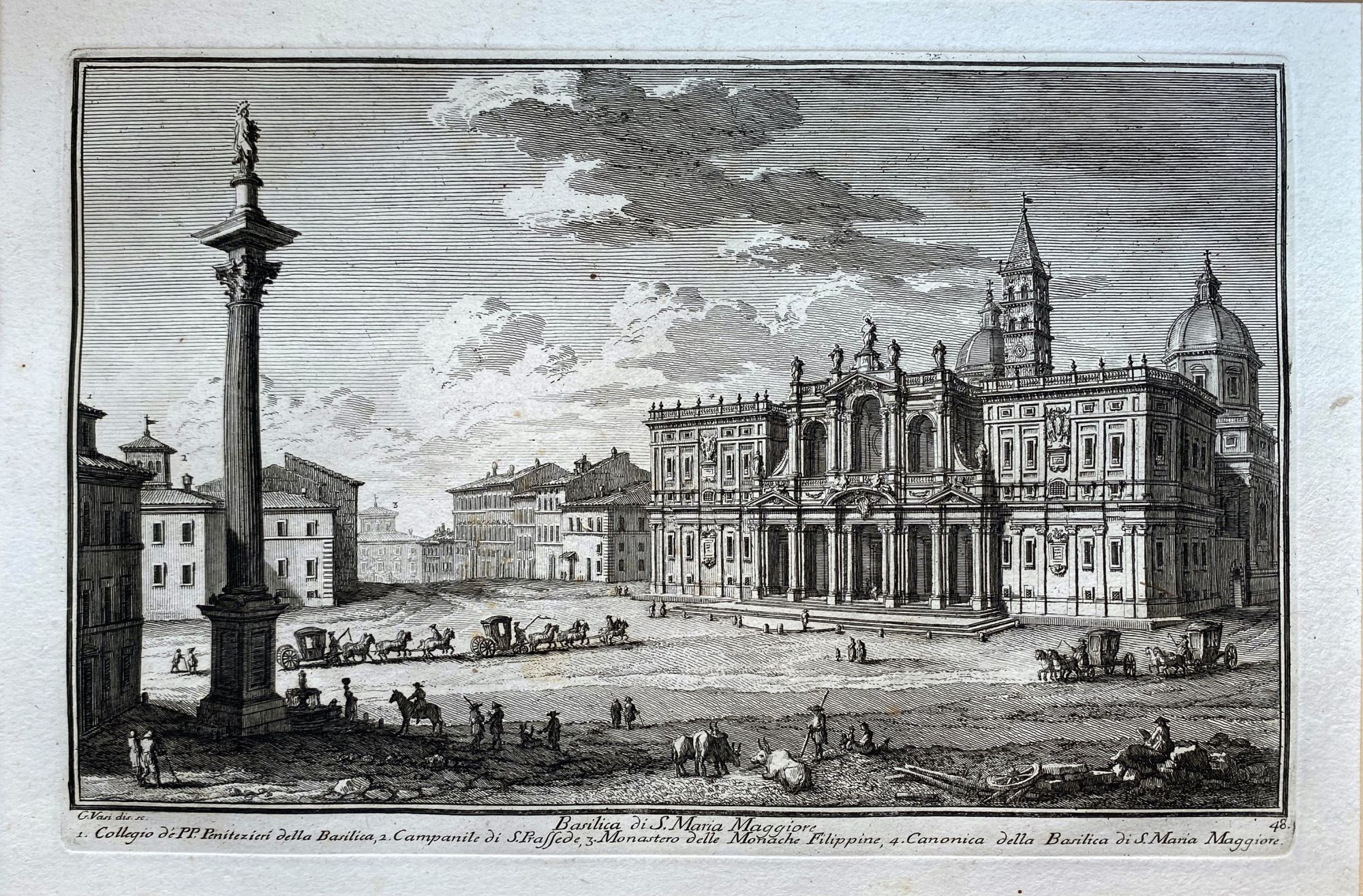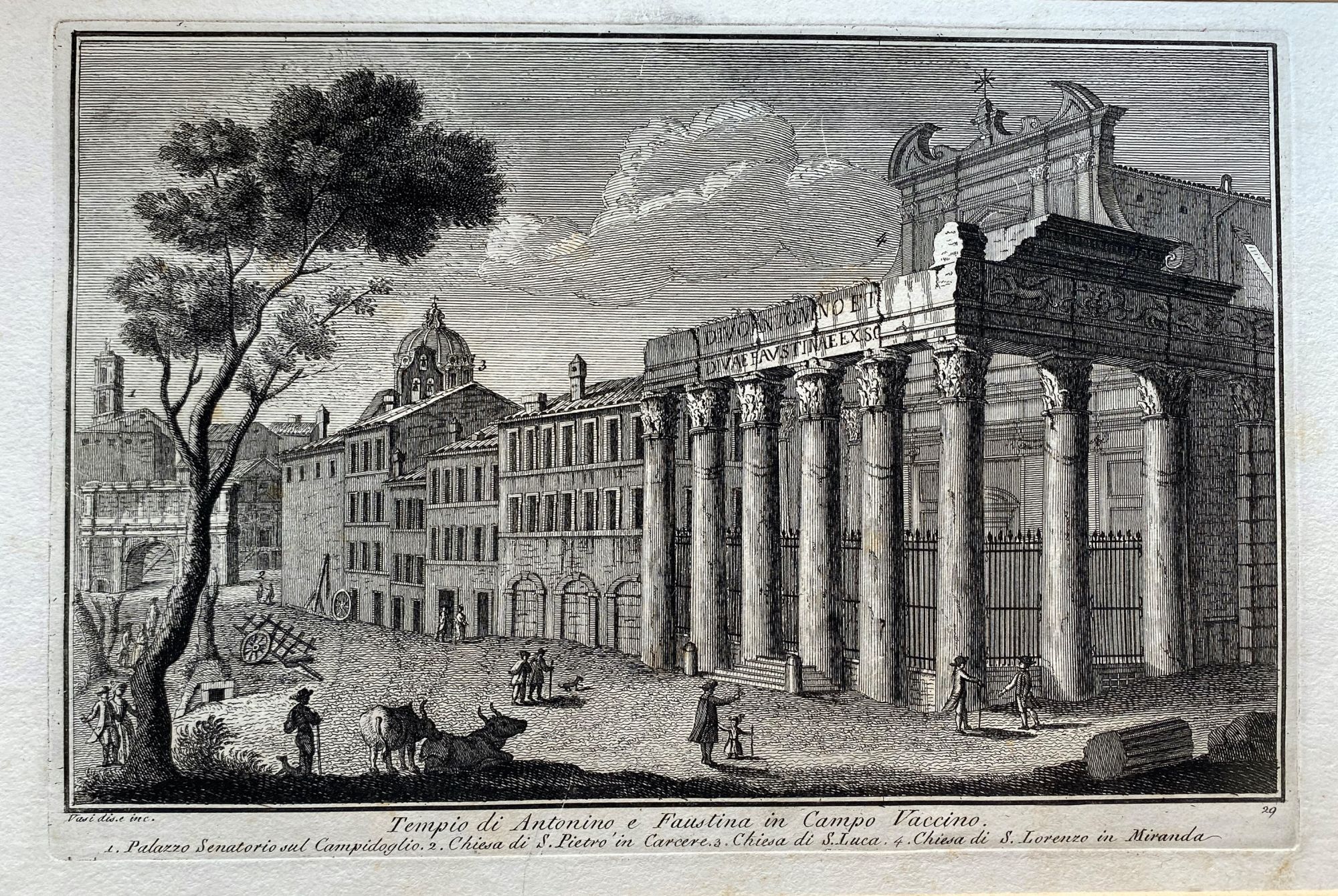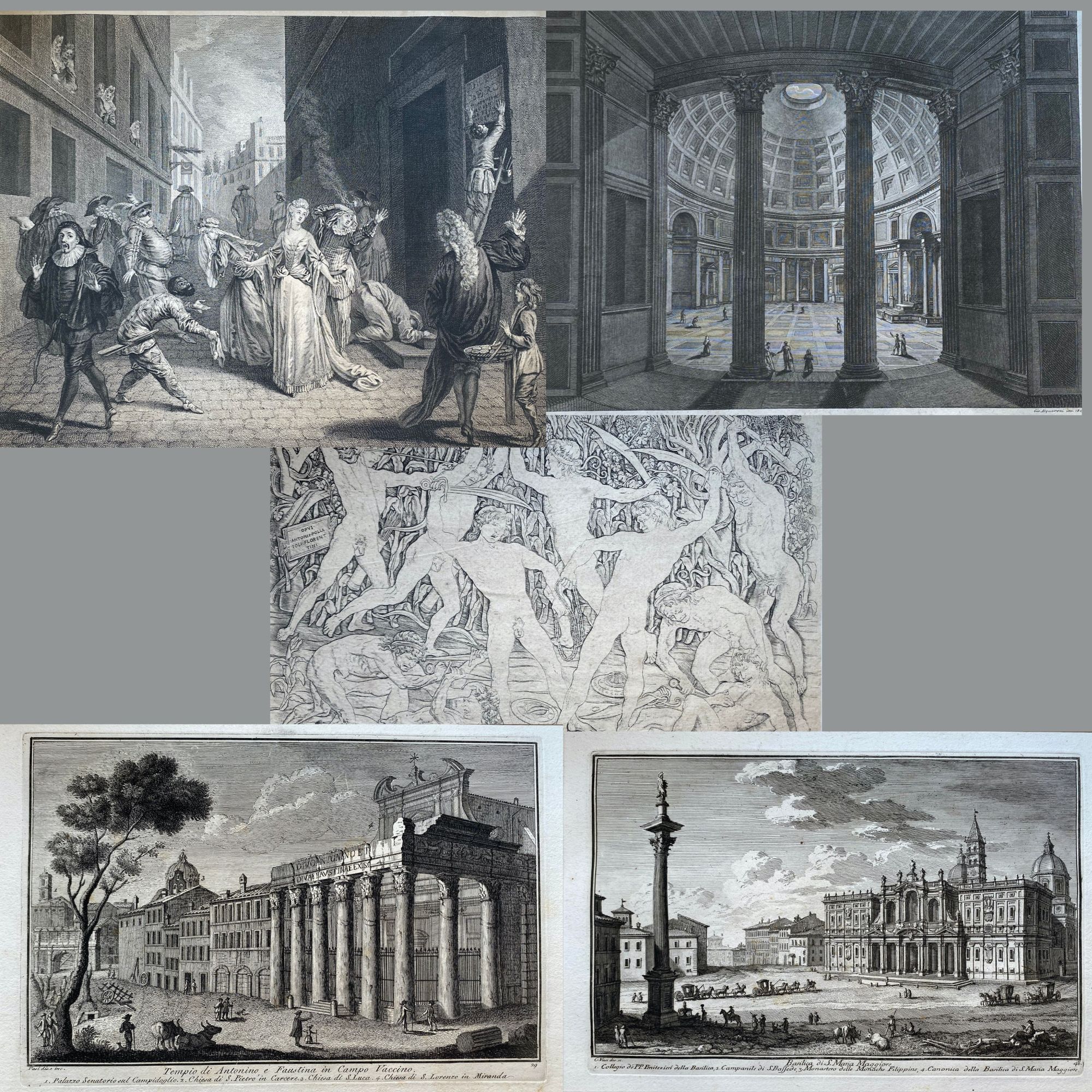 Giuseppe Vasi (1710 – 1782), Basilica di D. Maria Maggiore | Tempio di Antonio e Faustina in Campo Vaccino. Belle impressioni in tiratura tarda su carta vergata pesante. Ottime condizioni, con passe-partout.