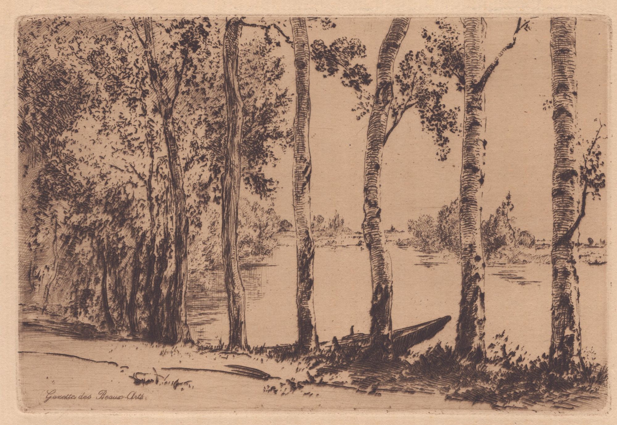 Félix Bracquemond (1833 - 1914) Trembles au bord de la Seine