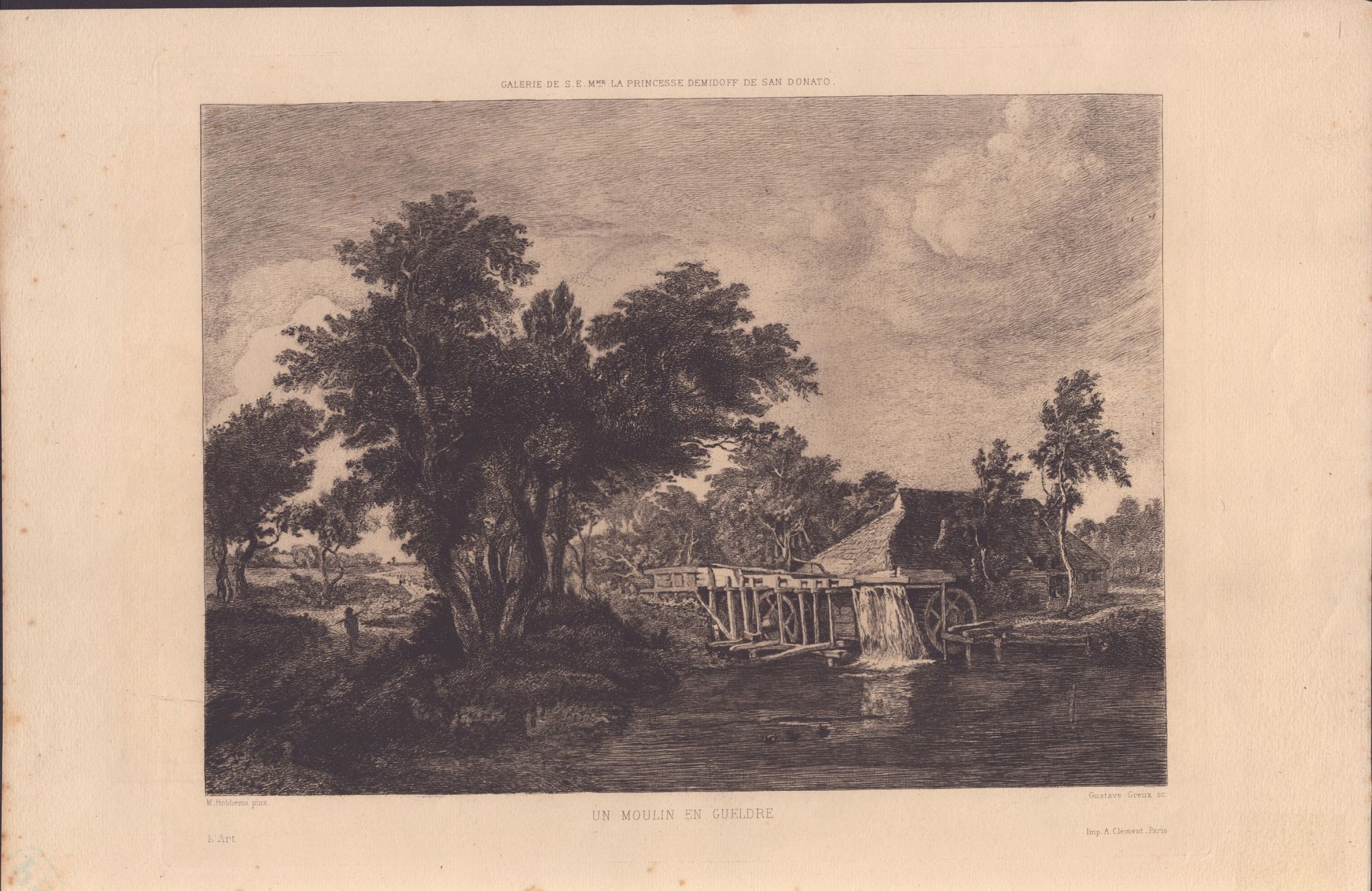 da Meindert Hobbema (Amsterdam, 1638-1709), acquaforte 283 x 426 mm, edizione L'Art, su carta vergata con un frammento di filigrana (lettere AR..), foglio in ottimo stato salvo delle lievi tracce di fioritura