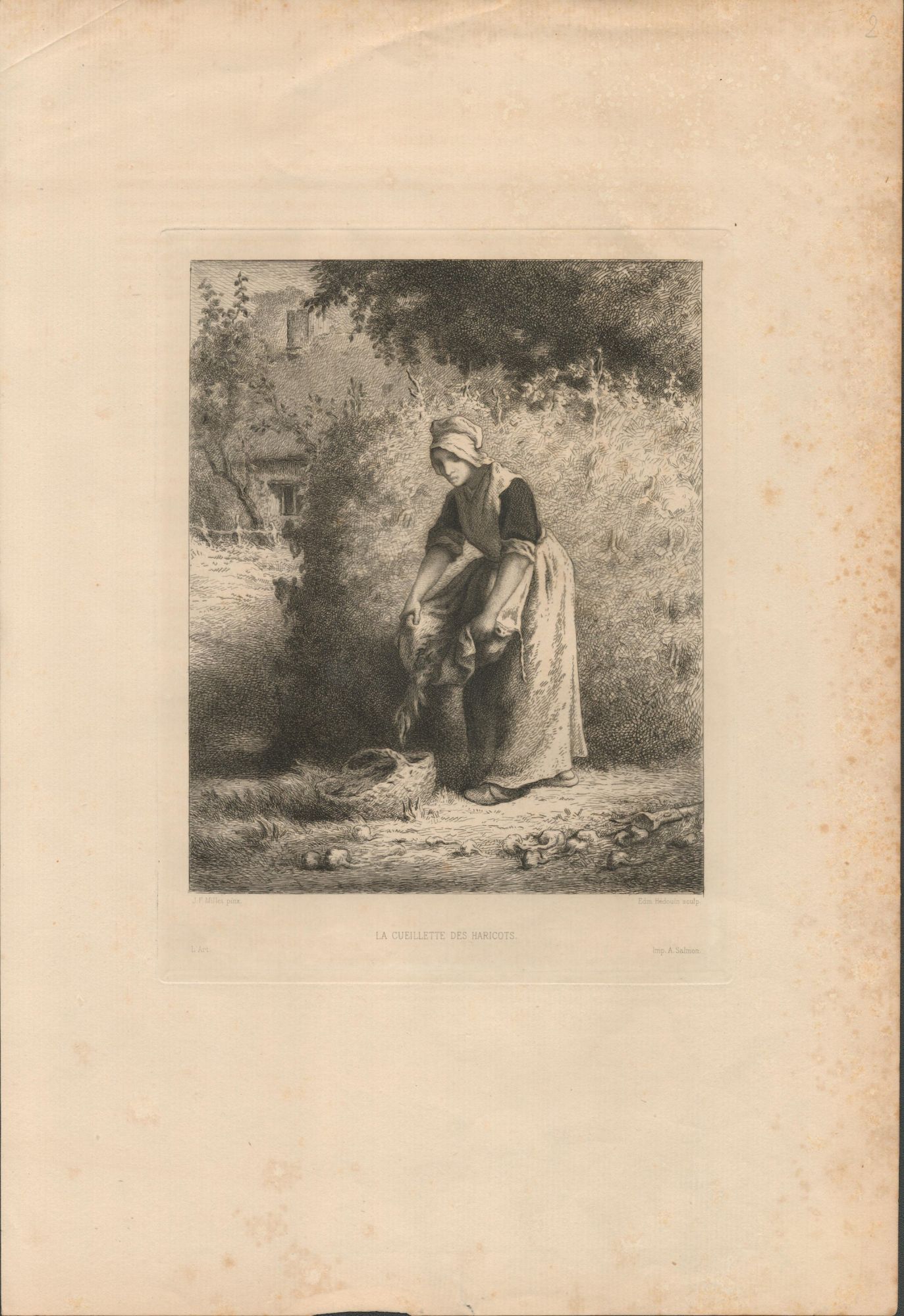 da Jean François Millet, acquaforte, 425 x 293 mm, edizione L'Art 1875, bella impressione su carta vergata, foglio in buono stato di conservazione, con segni di fioritura sul margine destro e un restauro in basso