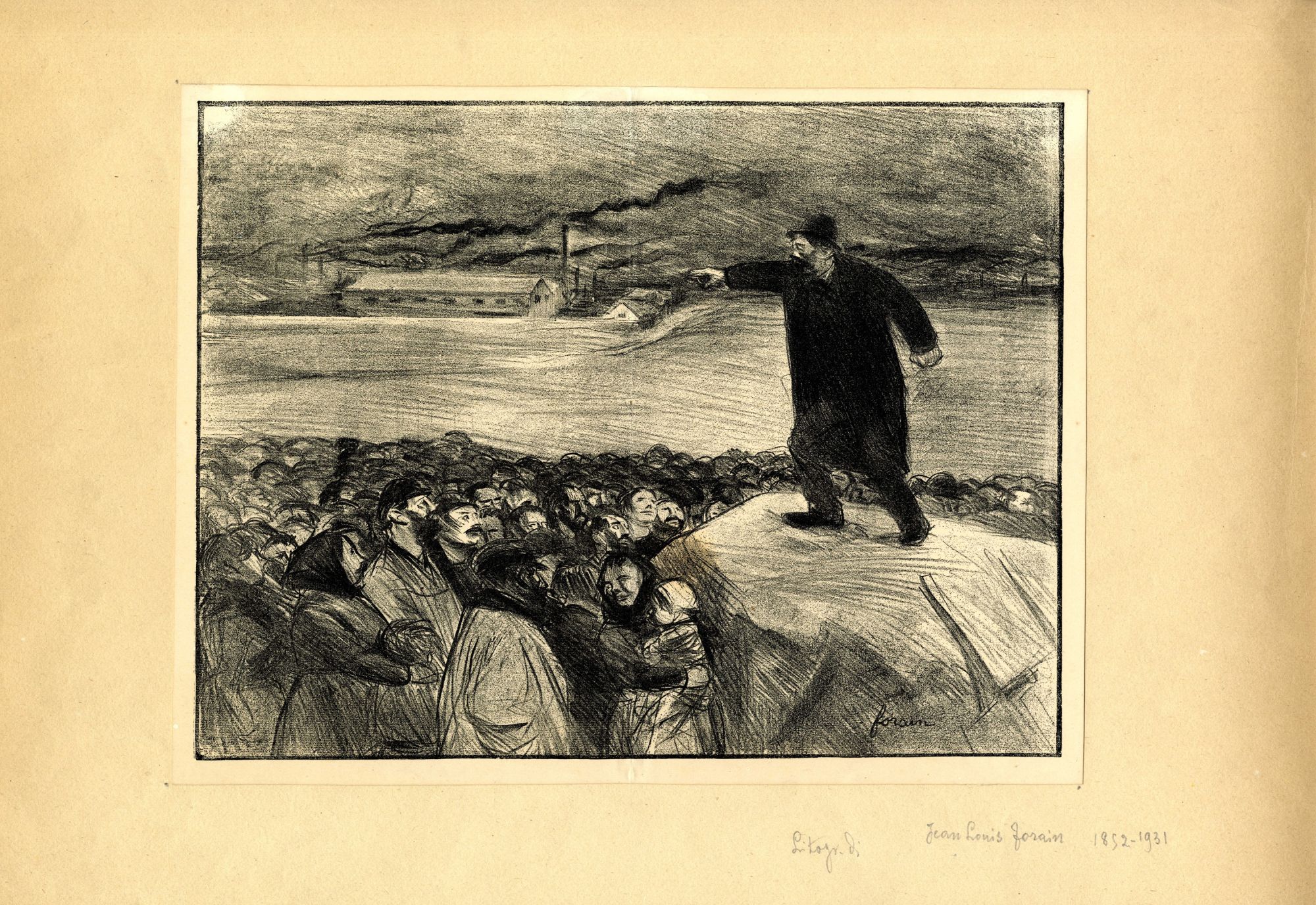 Jean Louis Forain (1852 - 1931) Uomo che arringa i lavoratori delle fabbriche