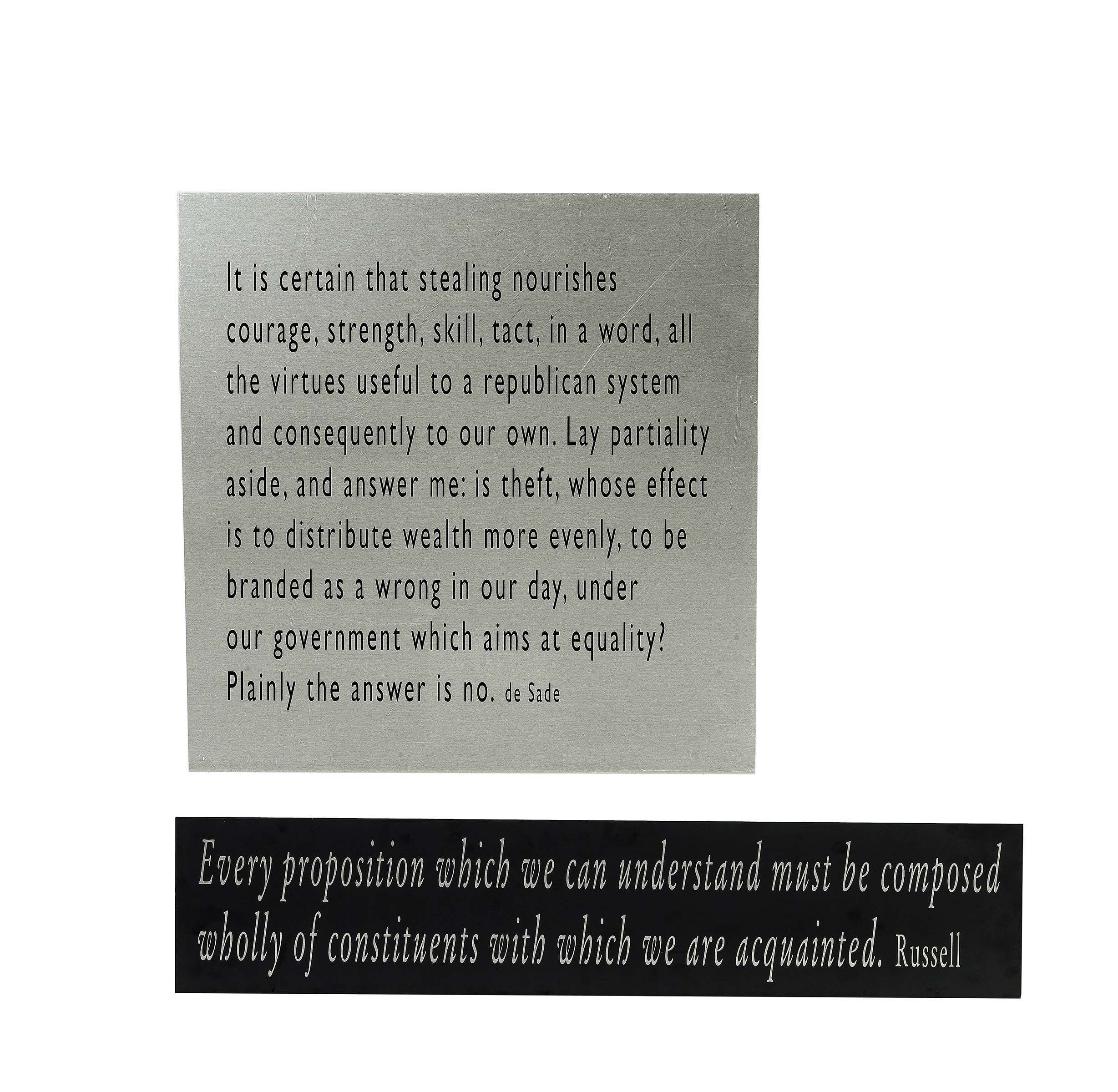 Joseph Kosuth Toledo 1945 One+Nine, a Re-text #9, 2003 Silkscreen su alluminio, cm. 90x110 (due elementi di cm. 20x95 e cm. 65x65) Certificato su foto firmato dall'artista.