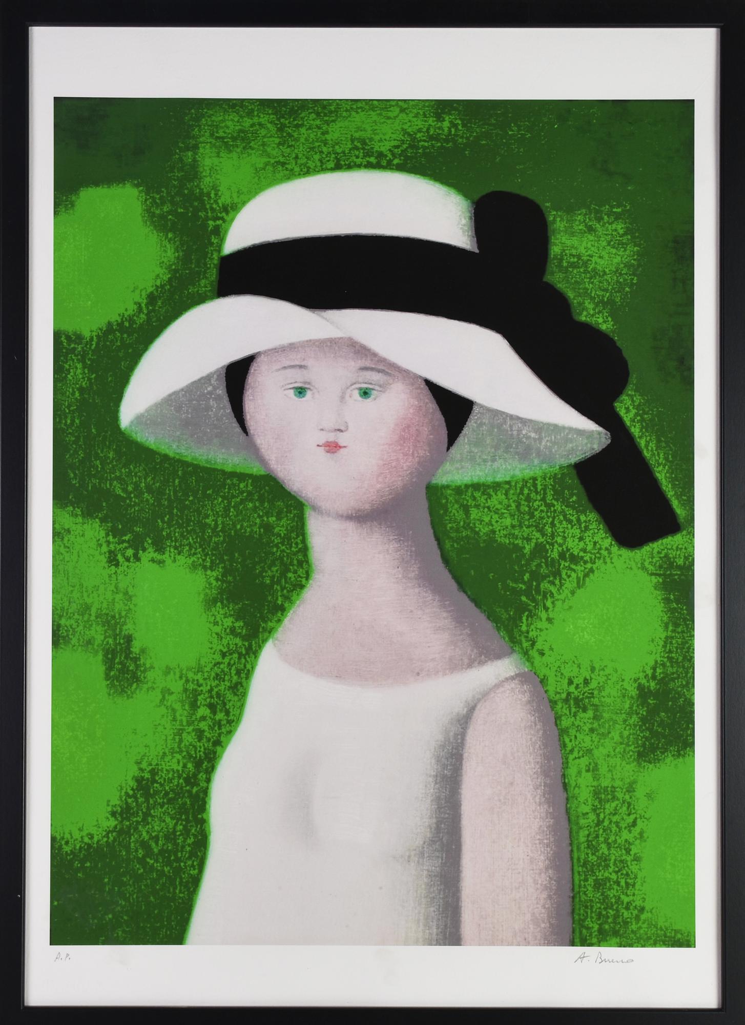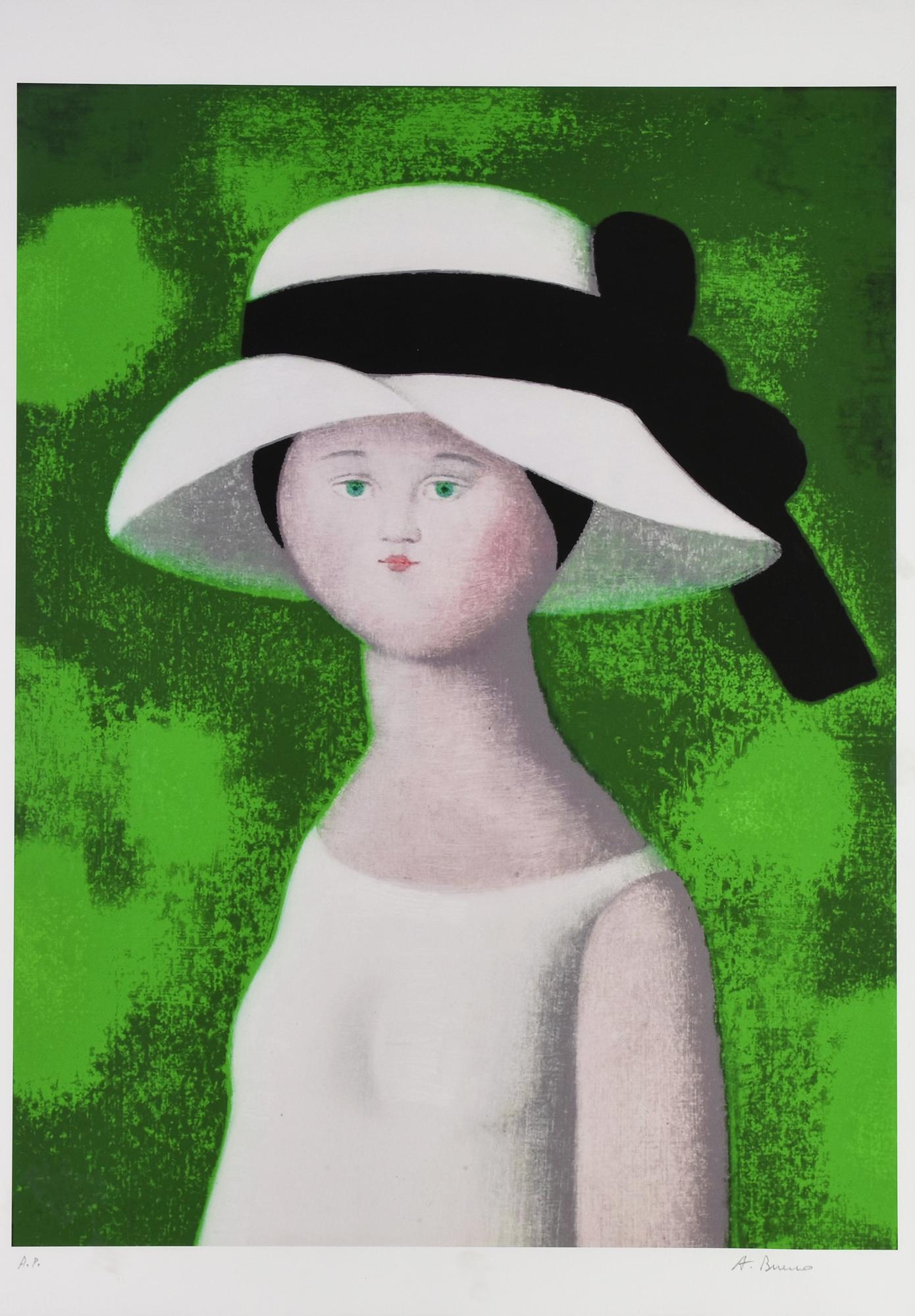 Antonio Bueno FANCIULLA CON CAPPELLO stampa tipografica su carta, cm 70x50;...
