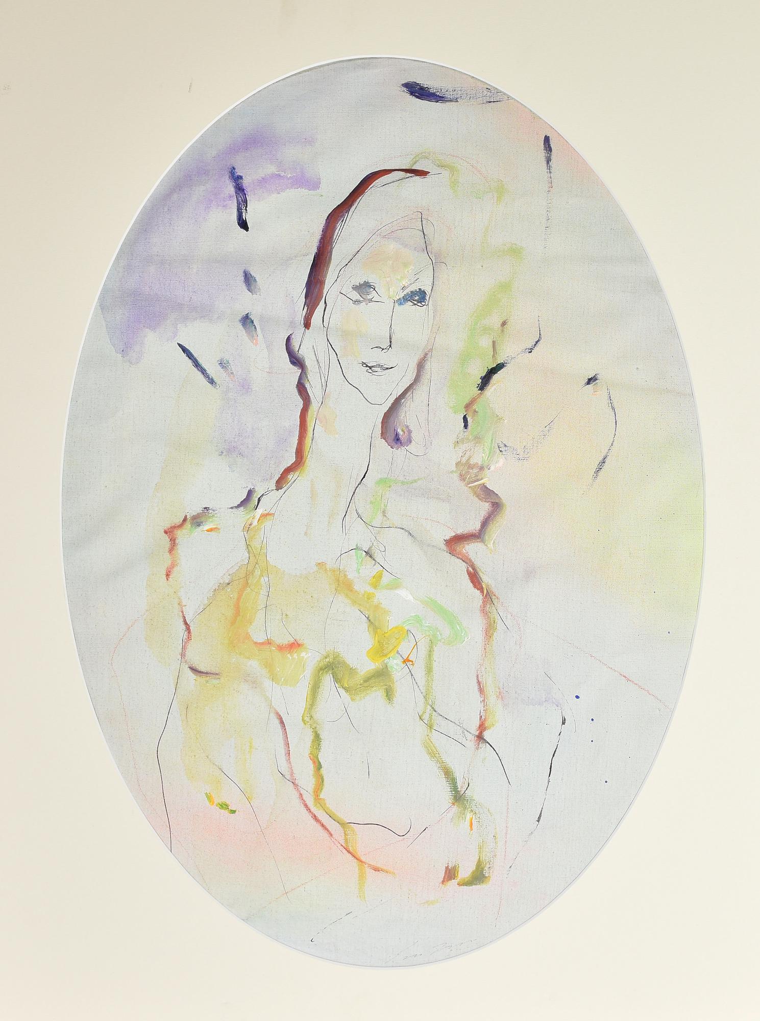 Ernesto Treccani RITRATTO olio su tela ovale, cm 70x48 firma