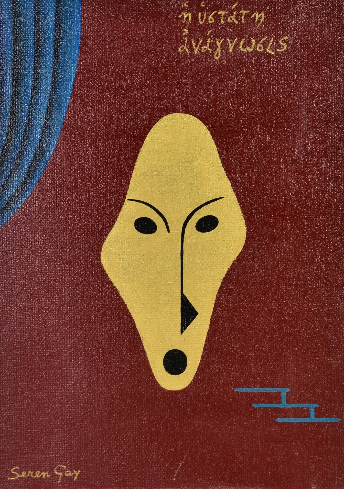 Domenico Seren Gay MASCHERA GRECA, 1985 acrilico su tela, cm 50x35 frima sul...