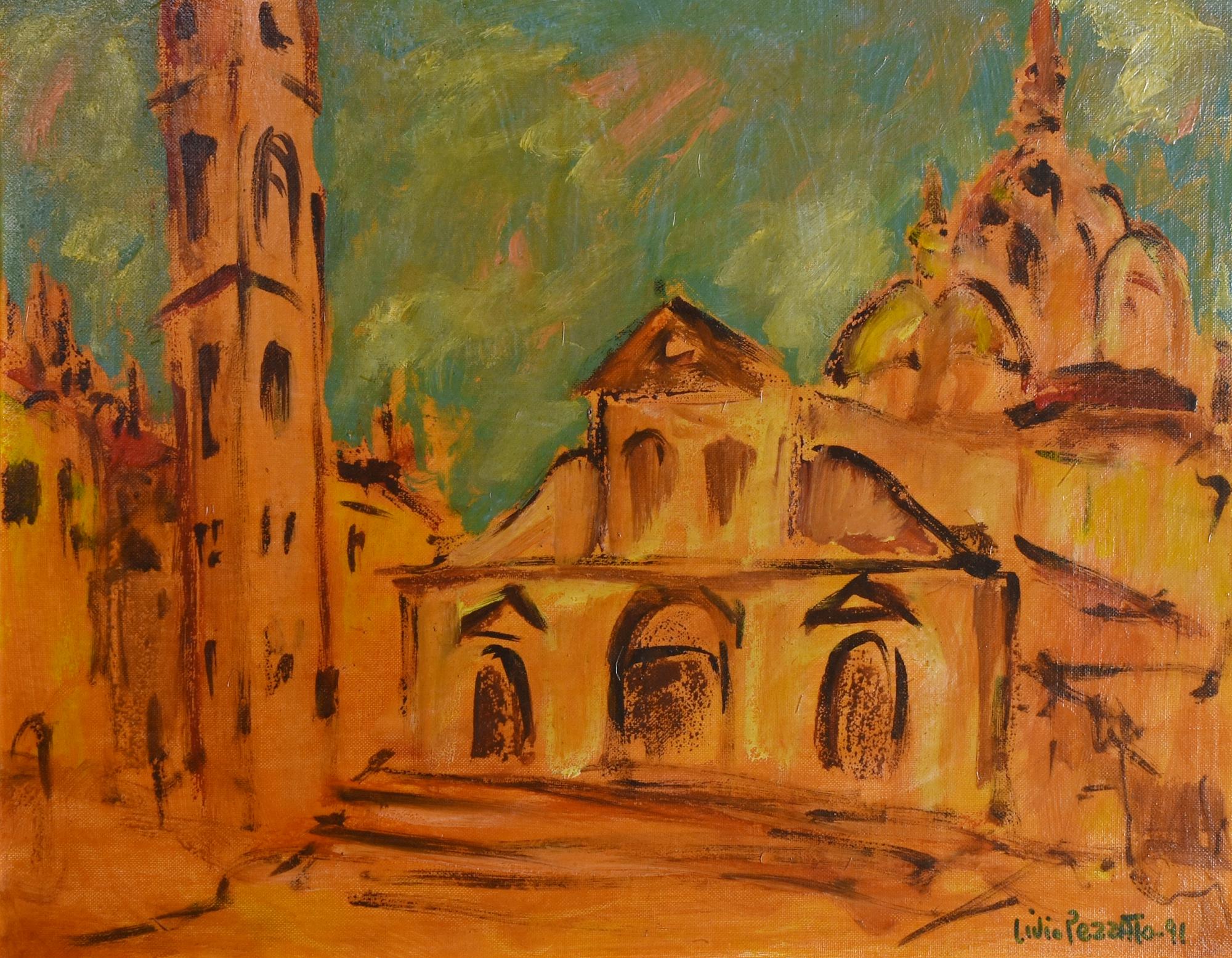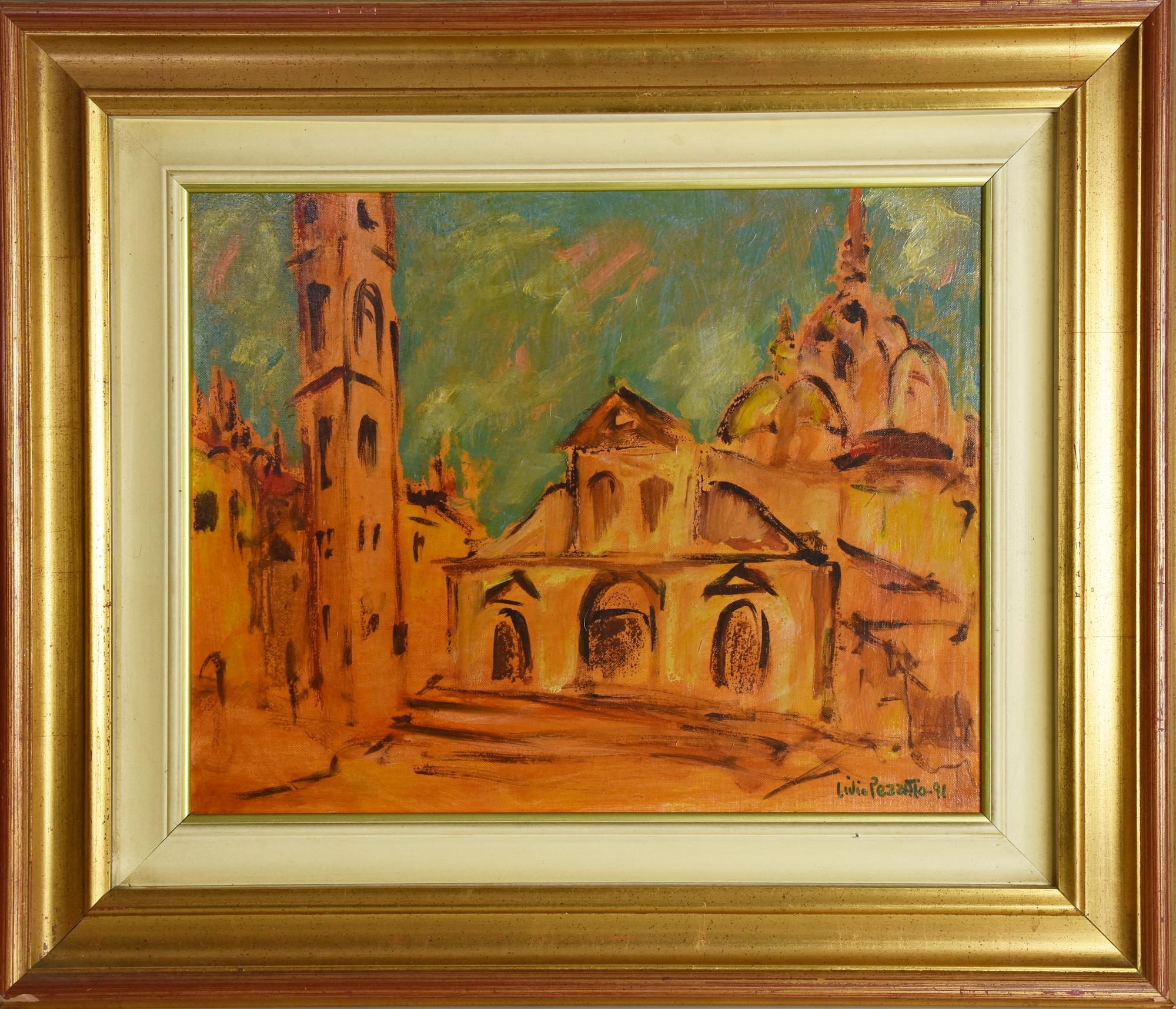 Livio Pezzato TORINO: IL DUOMO, 1991 olio su cartone telato, cm 35x45 firma e...