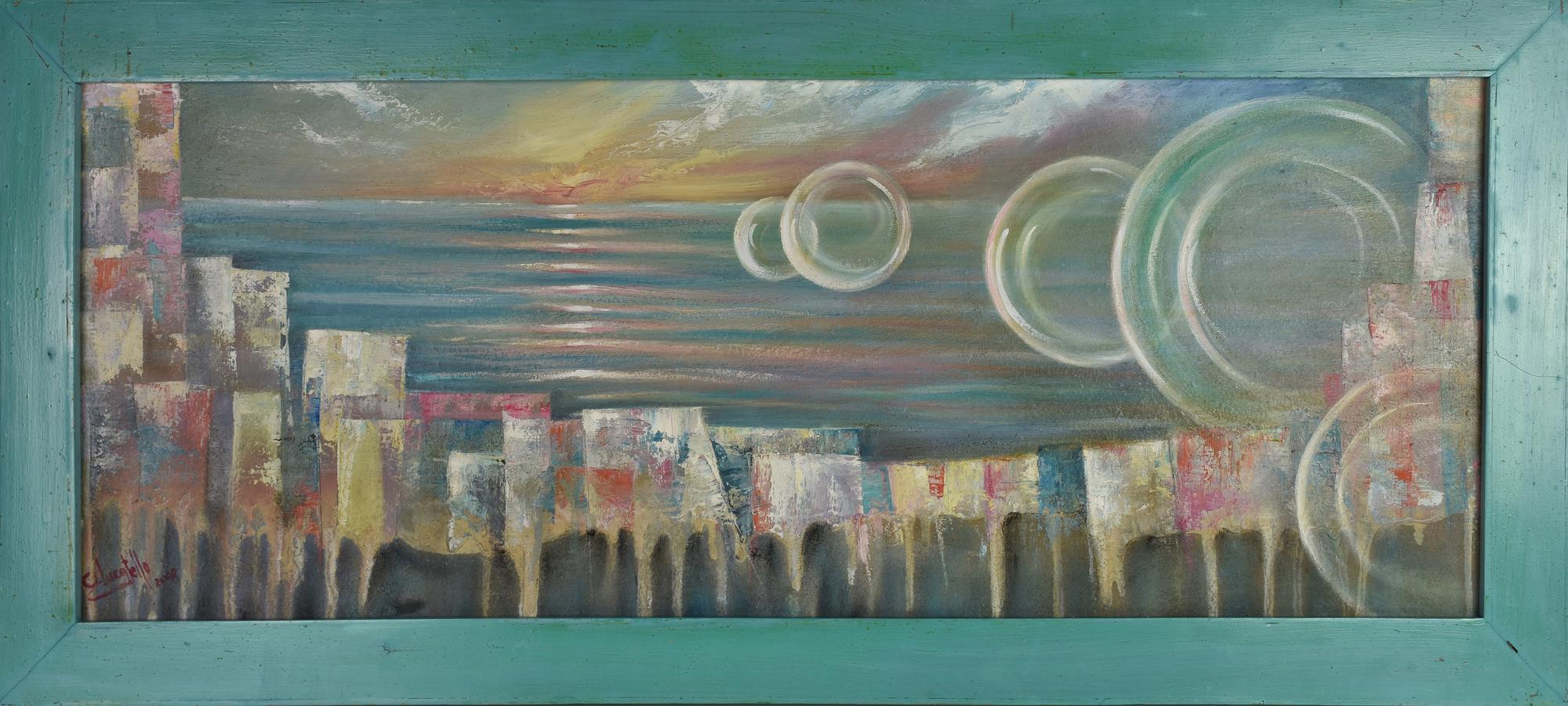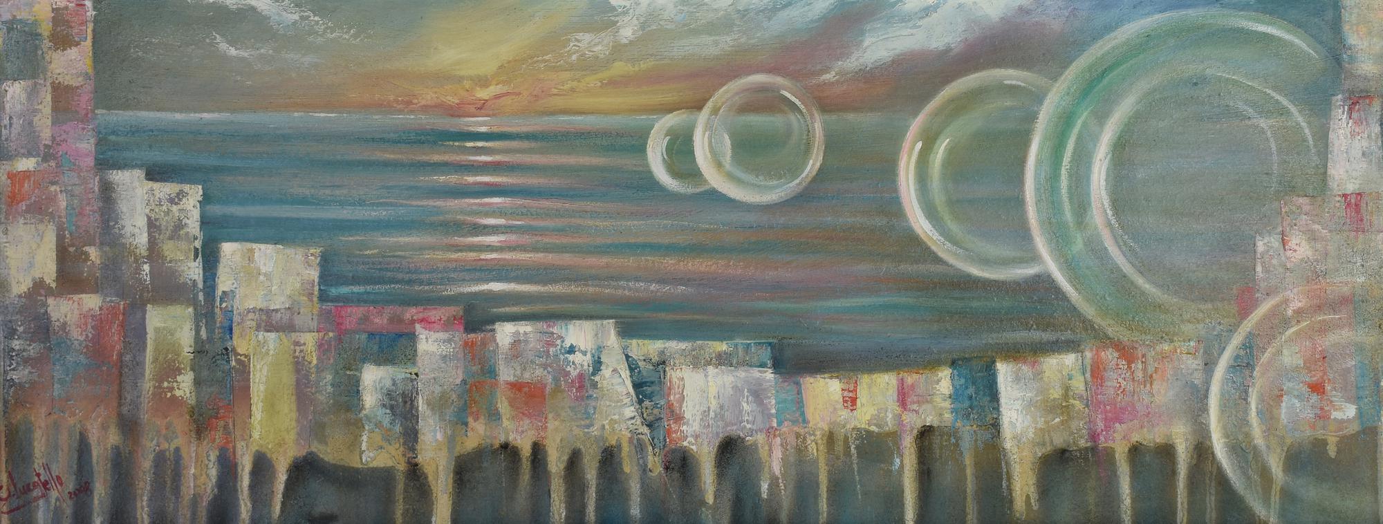 Gabriella Lucatello BOLLE DI SAPONE, 2008 olio su tavola, cm 35x97 sul...