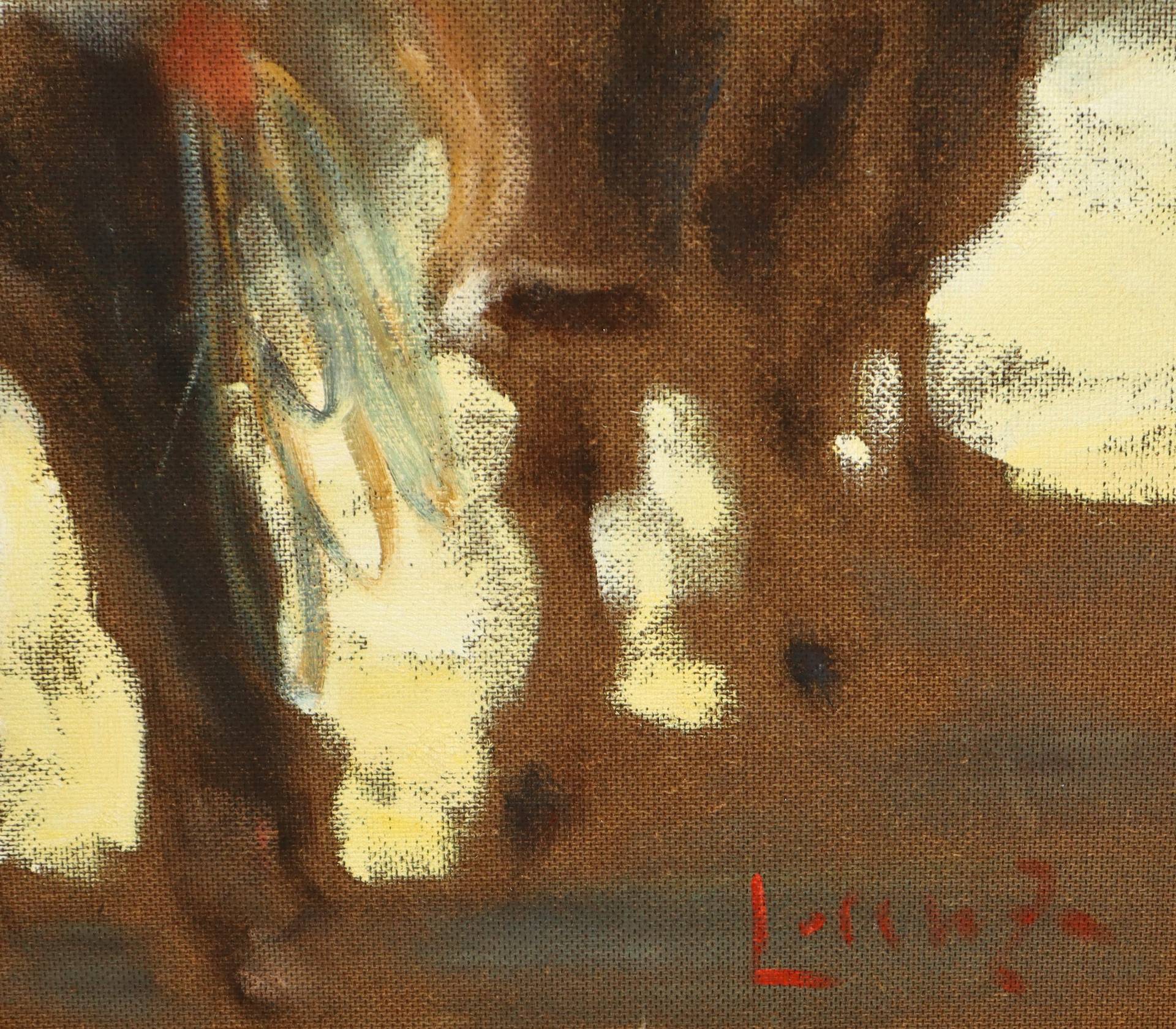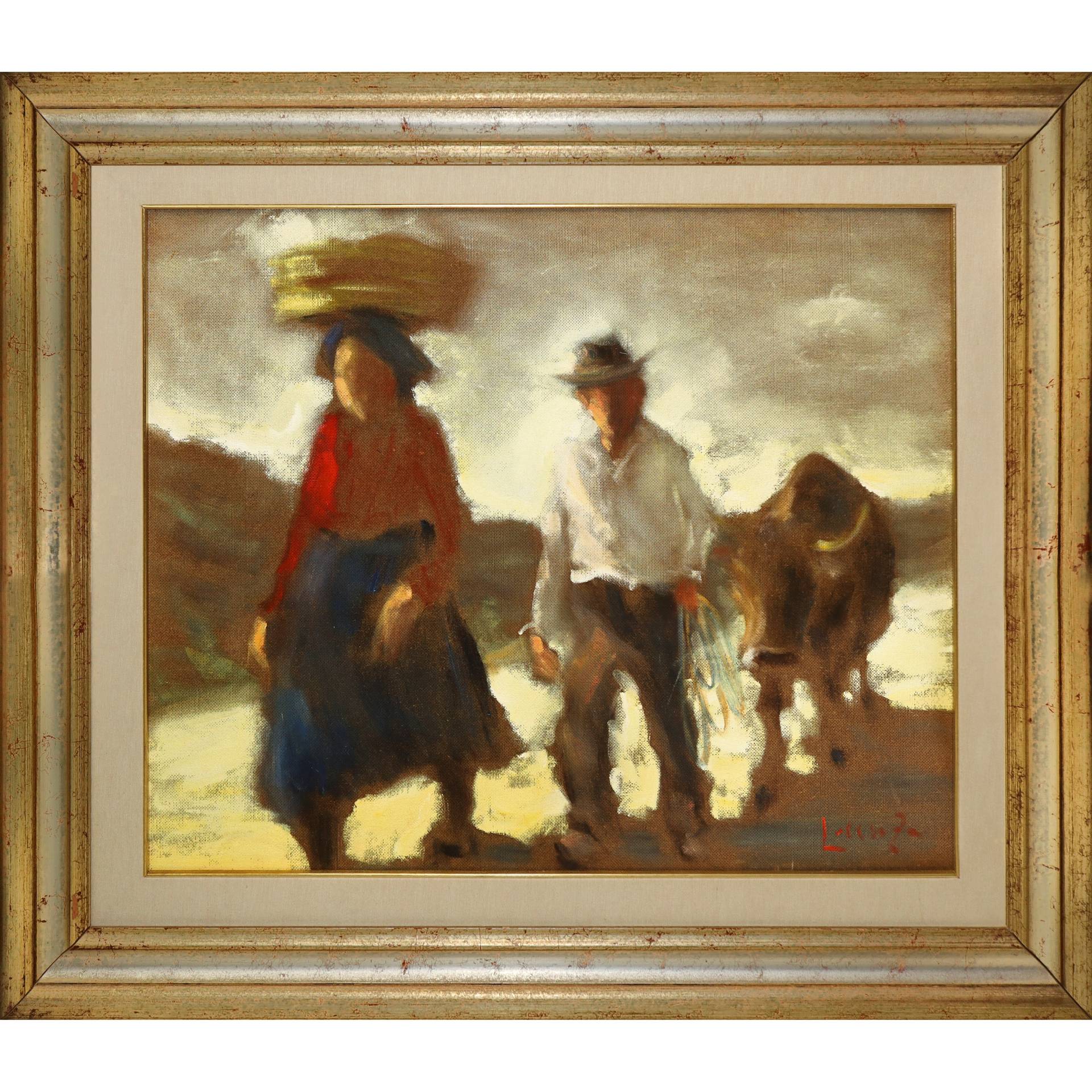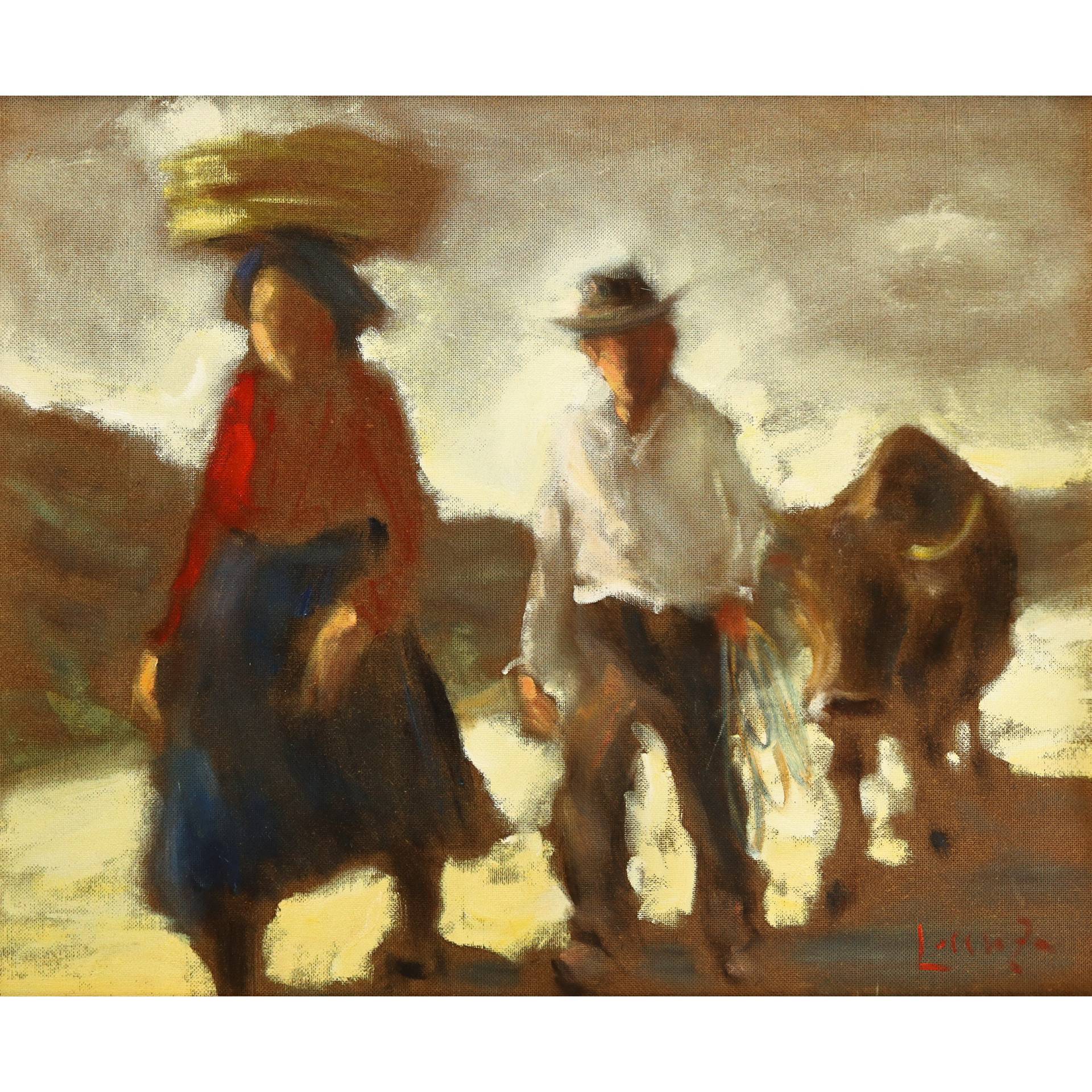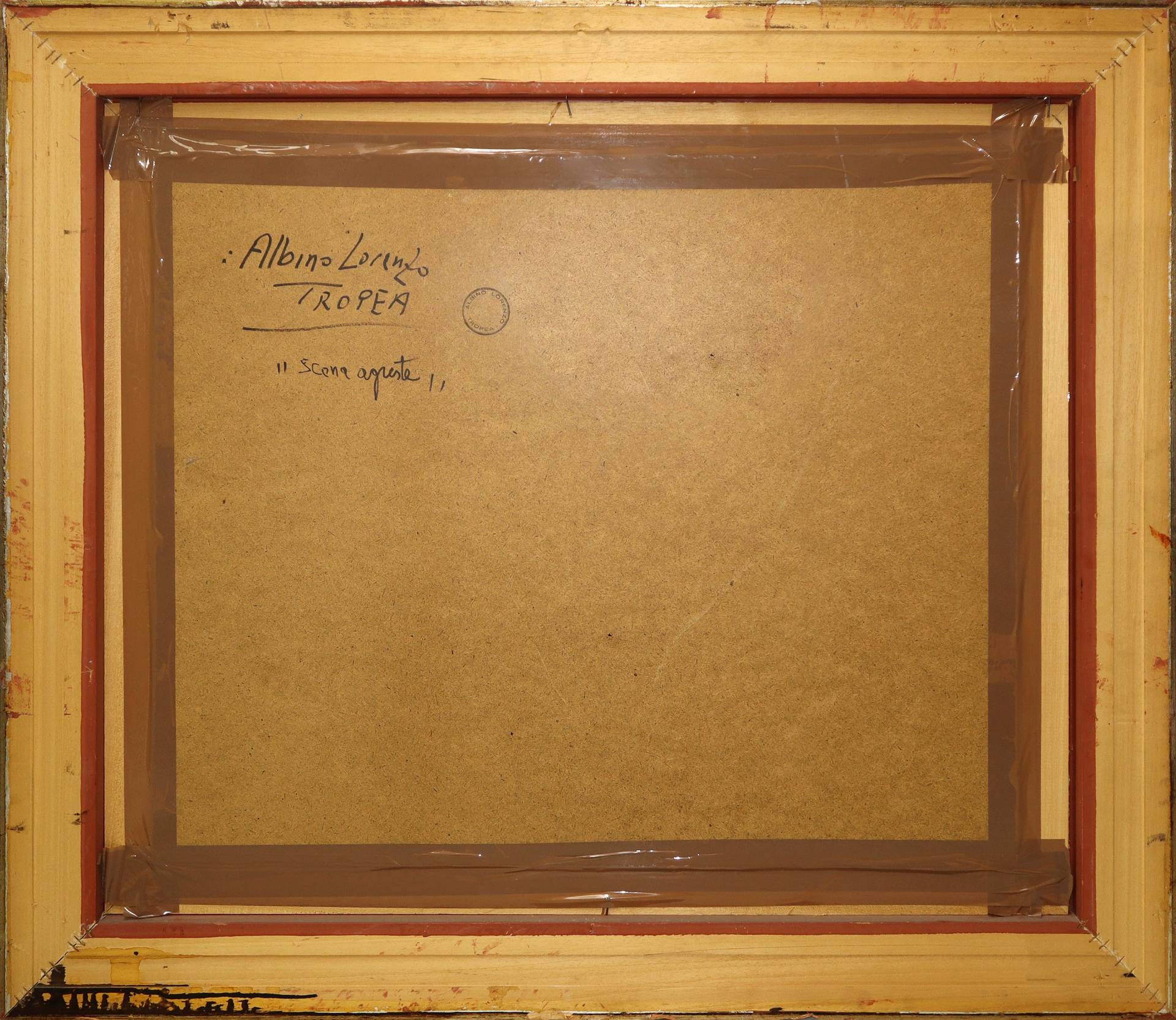 Lorenzo Albino (Tropea 1922-2005) - Scena agreste H cm 66x80 - in cornice H cm 93x108 olio su masonite Firmato in basso a destra. Al retro firmato, titolato e timbro del pittore.