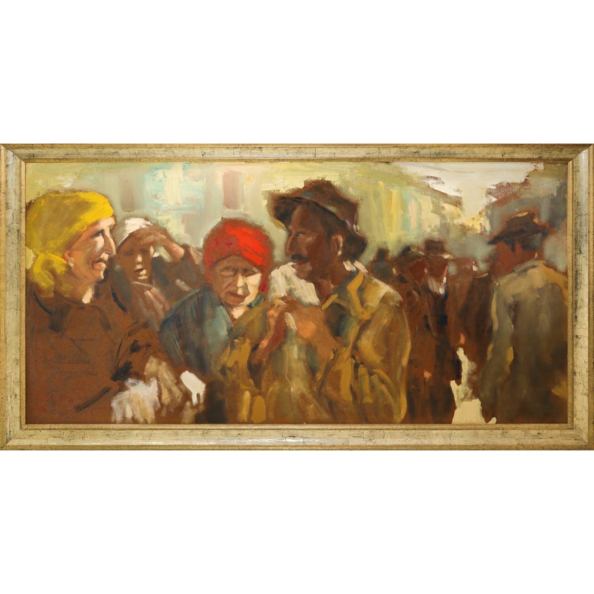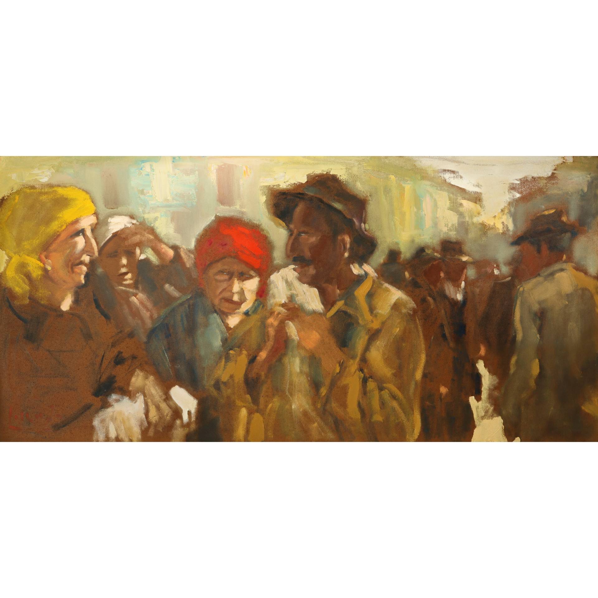 Lotto 12 | Lorenzo Albino (Tropea 1922-2005) - Donna con fascia rossa e personaggi vari