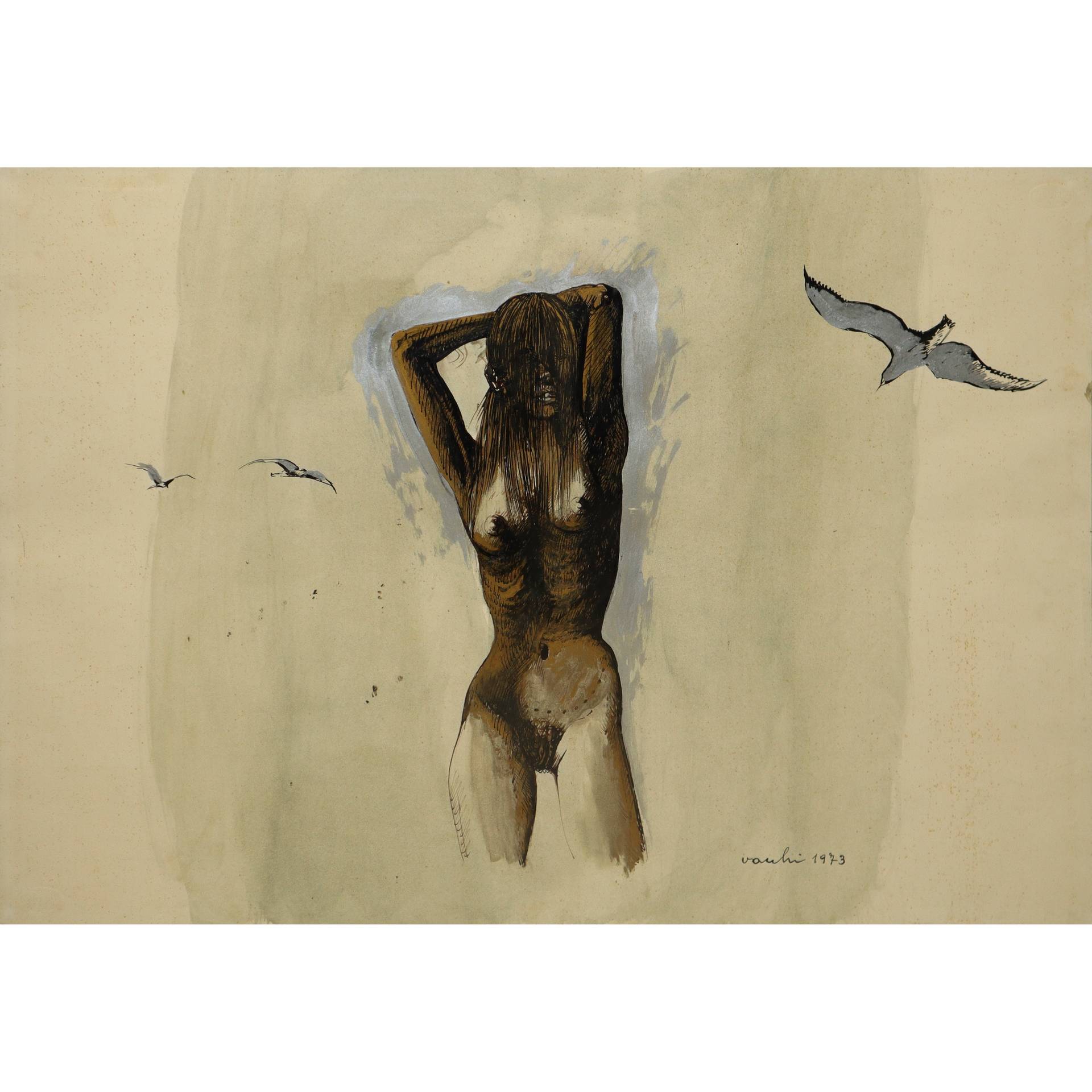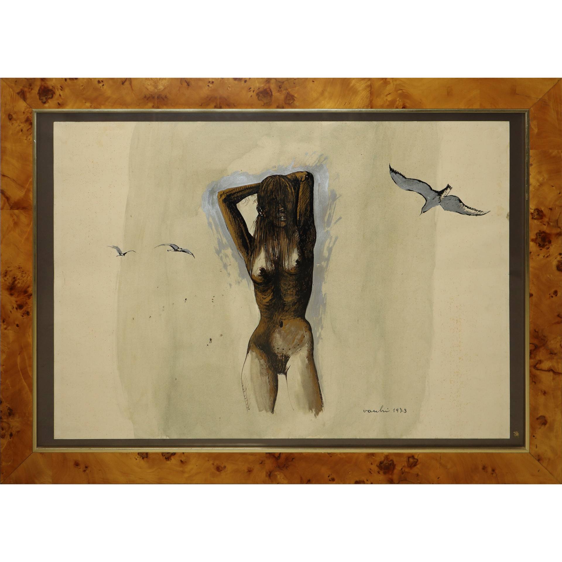 Sergio Vacchi (Castenaso 1/04/1925-Siena 14/01/2016) - Nudo, 1973 H cm 50x70 - in cornice H cm 63,5x86 Tecnica mista su carta Certificato di garanzia Effe&Effe per la diffusione dell'arte, Roma del 21/12/1980. Firmato e datato in basso a destra.