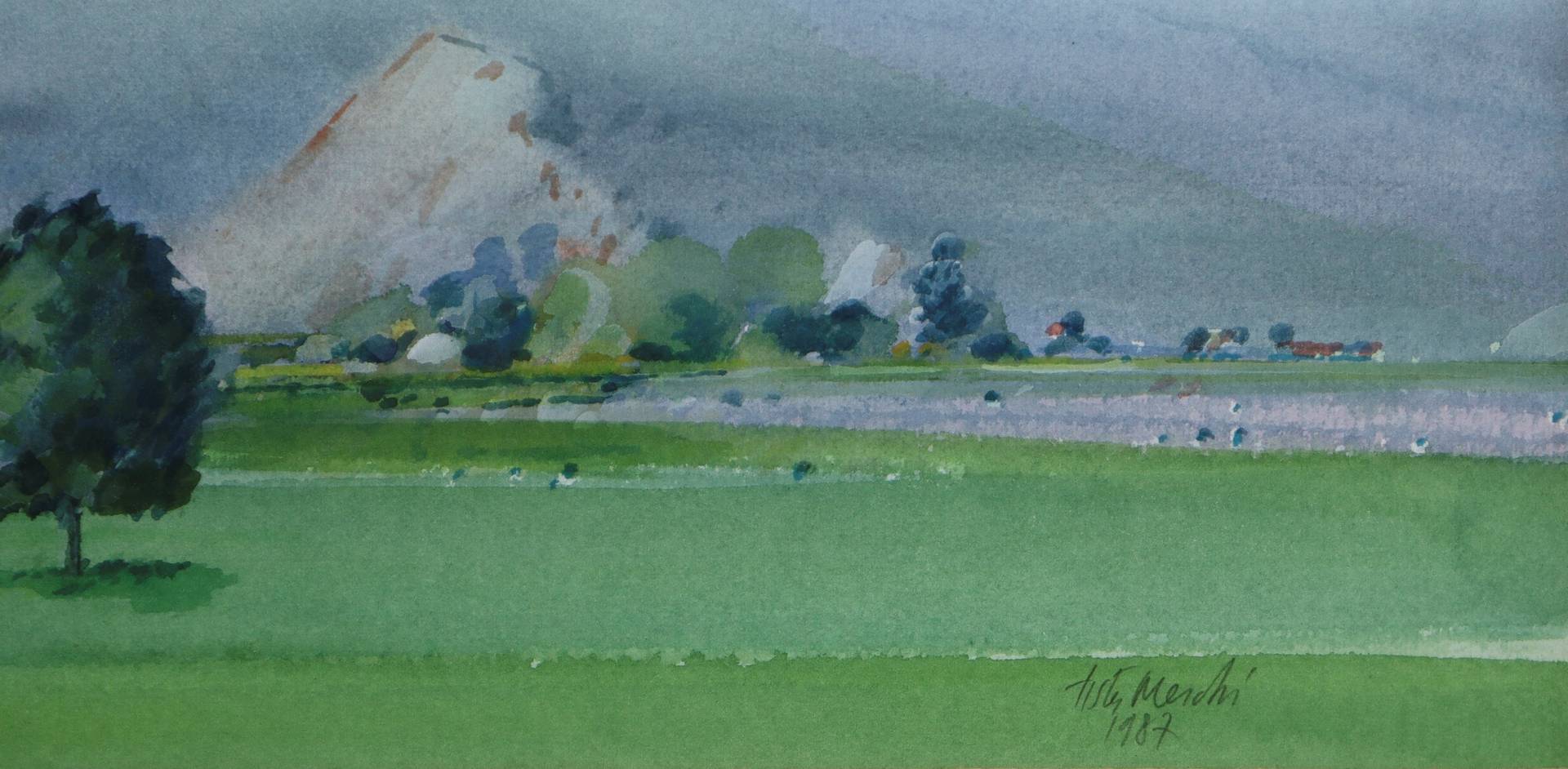 Tista Meschi (1935) - Paesaggio, 1997 cm 36x54, in cornice cm 52x70 Acquerello su carta Firmato e datato sul fronte in basso a destra.