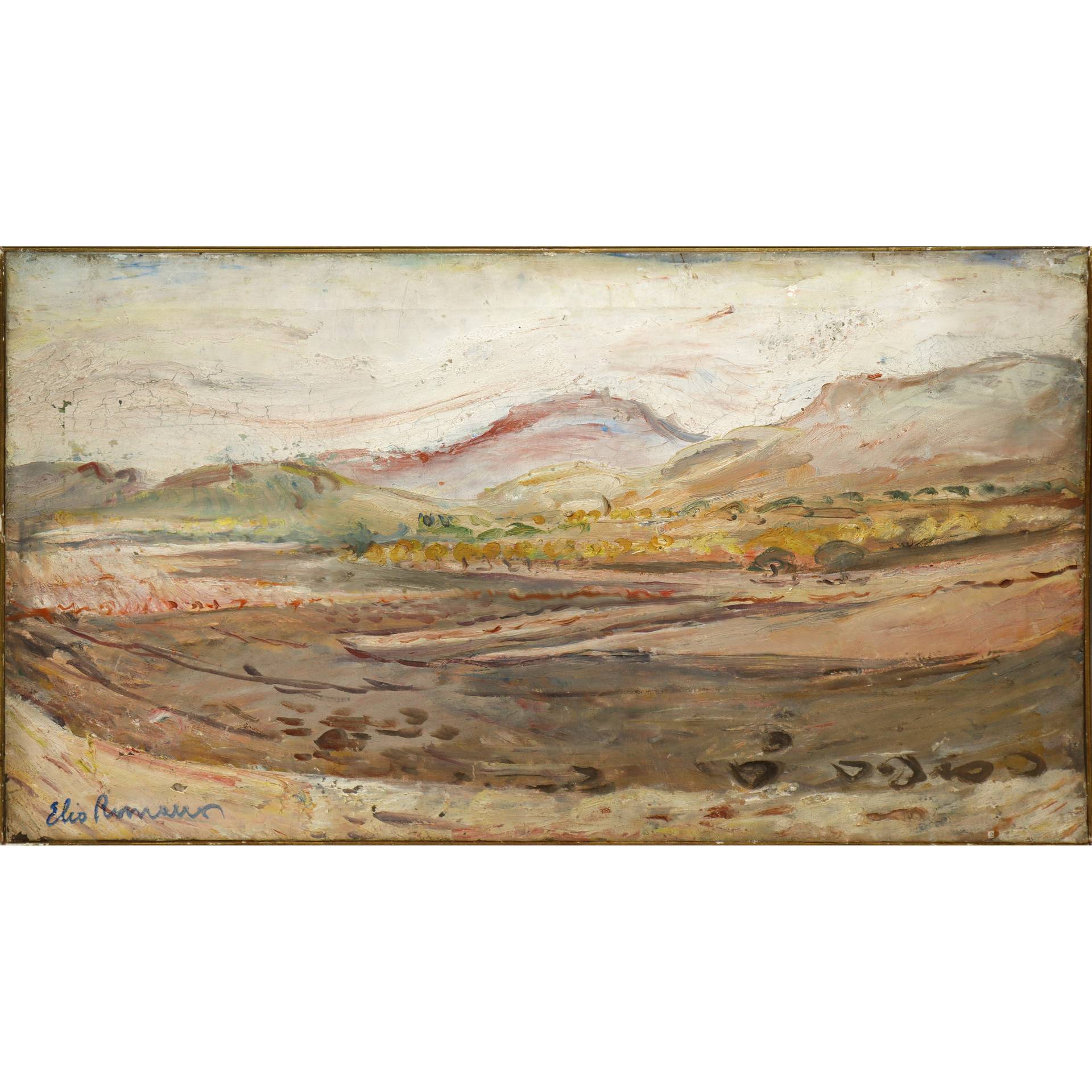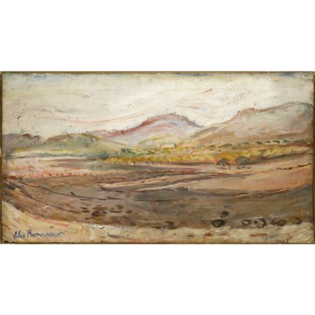 Elio Romano (Trapani 1909-Catania 1996) - Paesaggio (Colline di Assoro) H cm 40x67 Olio su tela Firmato in basso a sinistra. Dipinto sprovvisto di cornice