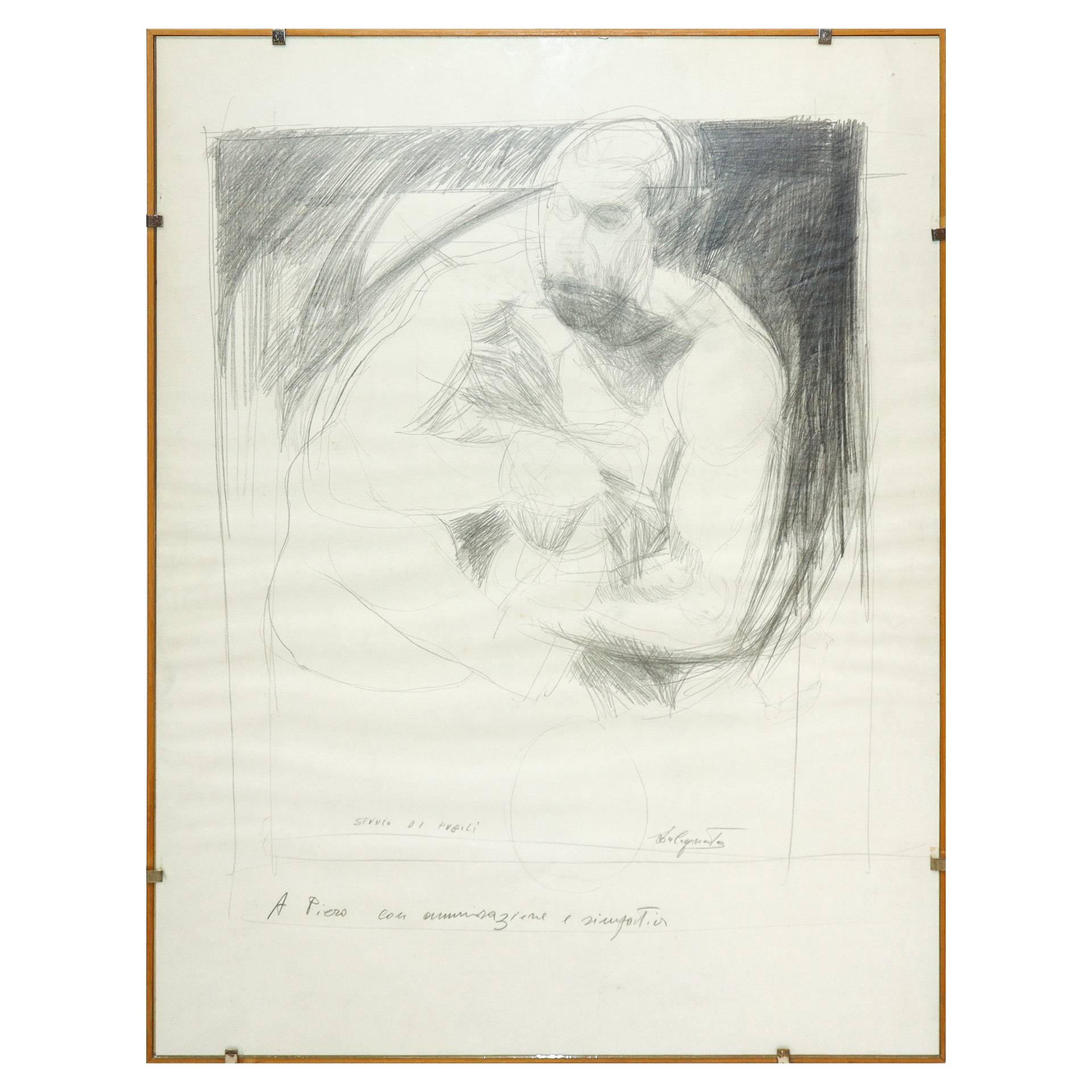 Giovanni La Cognata (1954) - Lo studio di pugili Cm 52x38,5 Marita su carta Firma titolo e dedica al fronte