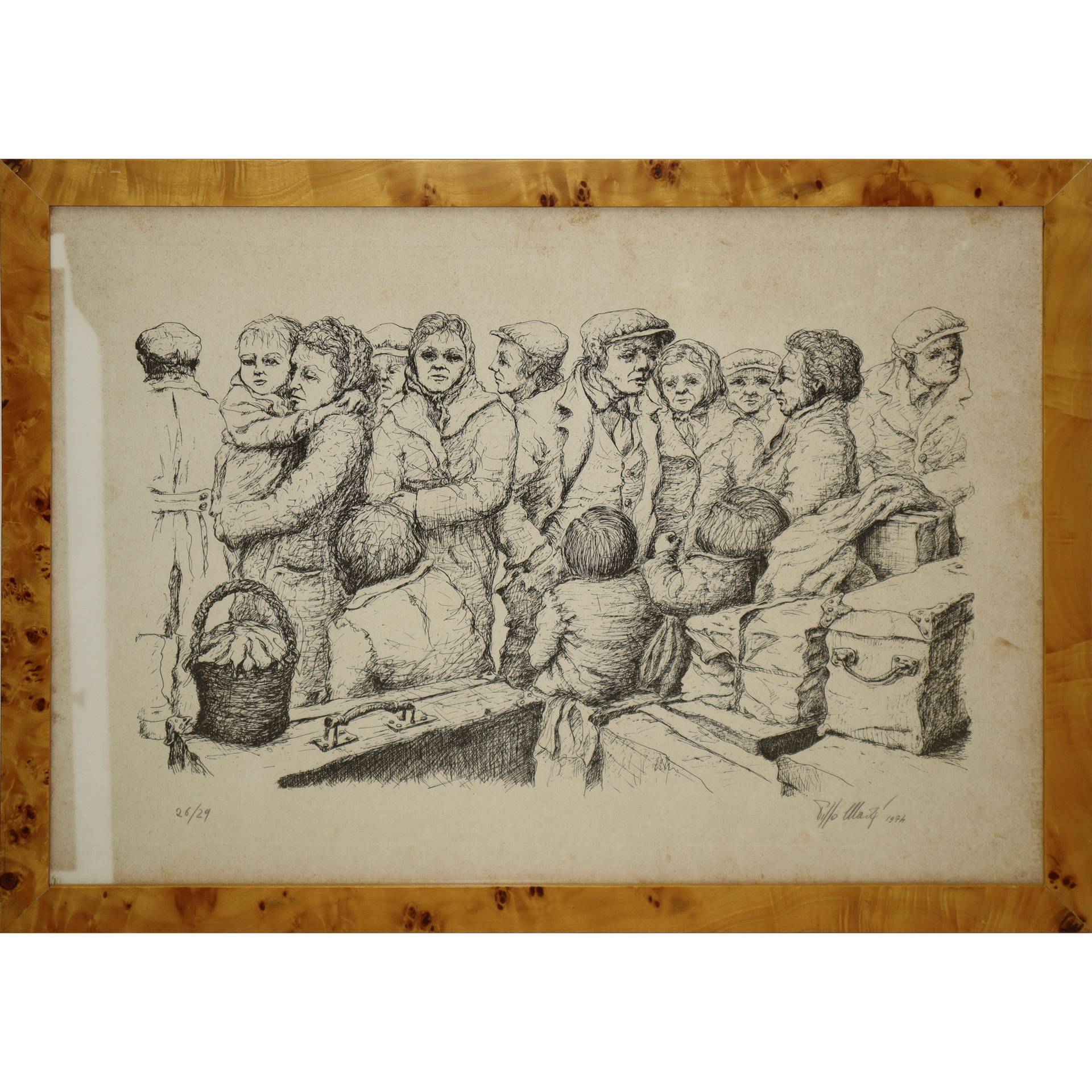Pippo Made' (Palermo 1936) - Emigranti, 1974 H cm 55x75 litografia 26/29. Firmato in basso a destra