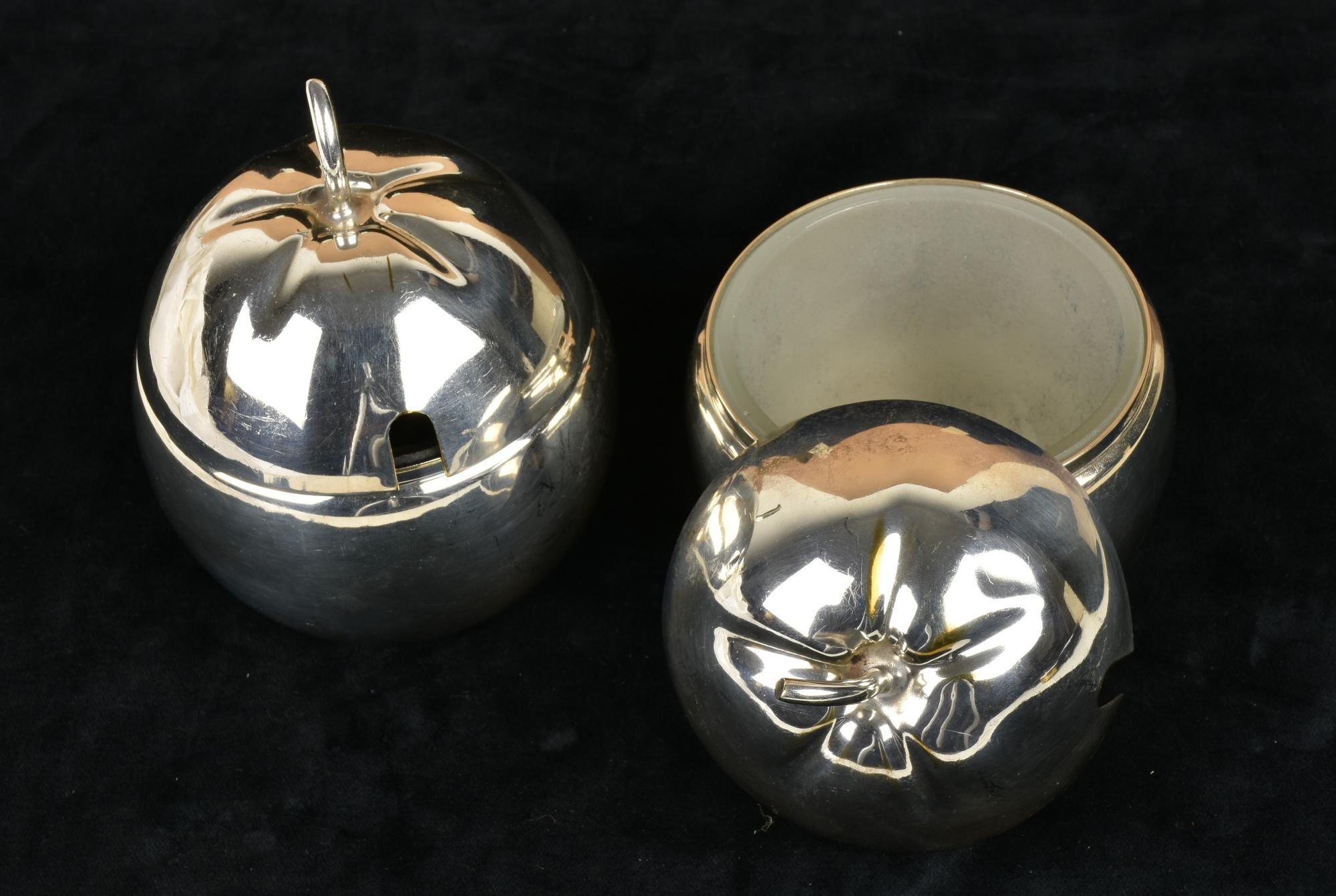 COPPIA DI ZUCCHERIERE in metallo argentato a forma di mela con interno in...