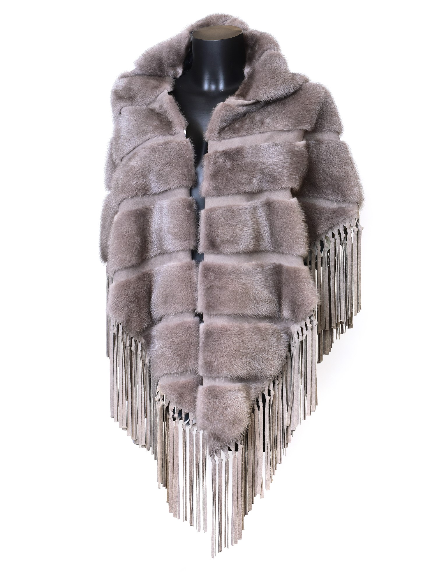 Scialle in visone con frange, realizzato da Simonetta Ravizza.