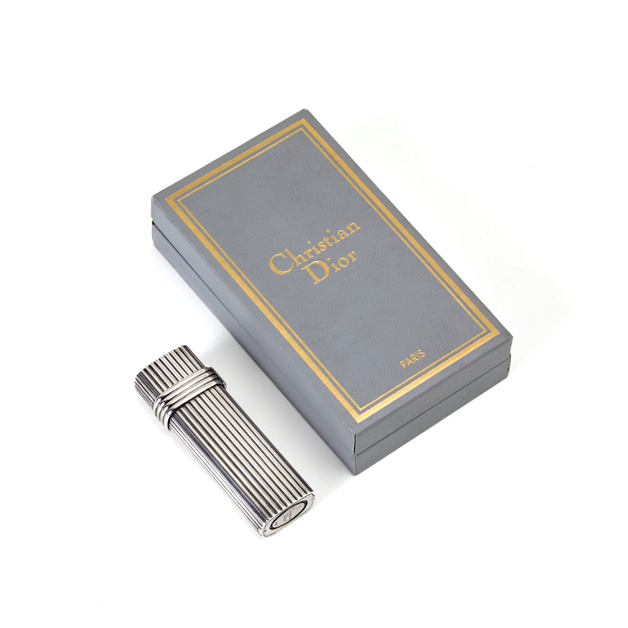 Accendino Dior Rayures Verticales argento placcato corredato di astuccio. Buone condizioni.