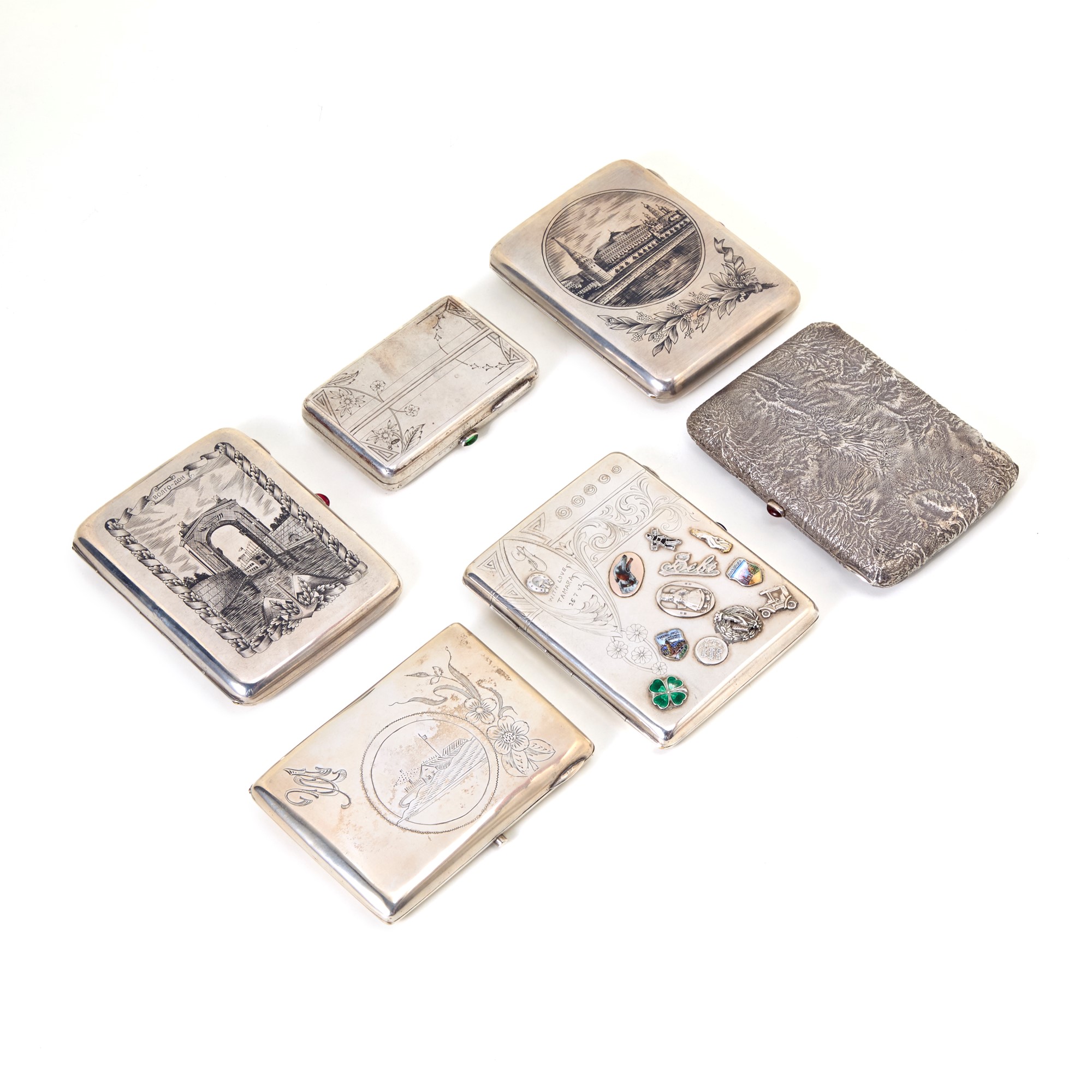 Lotto composto da sei portasigarette in argento di diverse dimensioni, punzoni russi