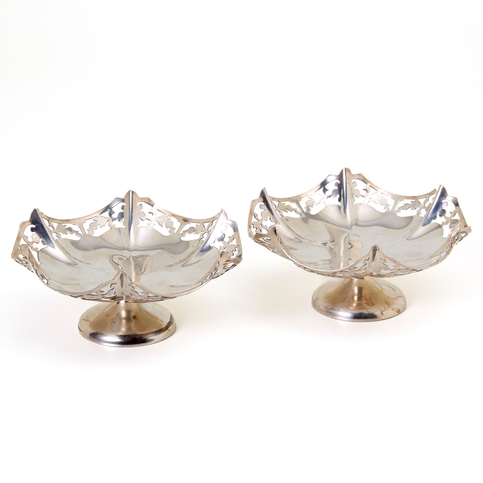 Pair of silver stands with openwork wavy edge, English hallmarks