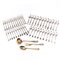 Parte di servizio da posate in metallo argentato composto da: dodici cucchiai, dodici forchette, undici cucchiai da dolce, undici forchette da dolce e tre posate da portata