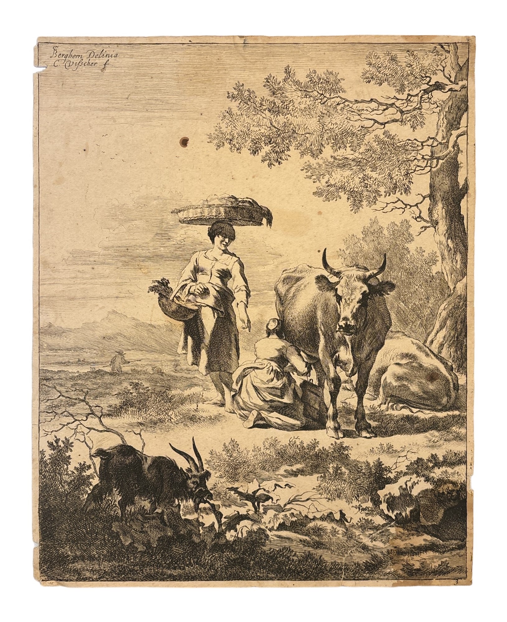 Lotto 85 | Cornelis II Visscher (1619/29 - 1658/62) Contadina con paniere in testa e...