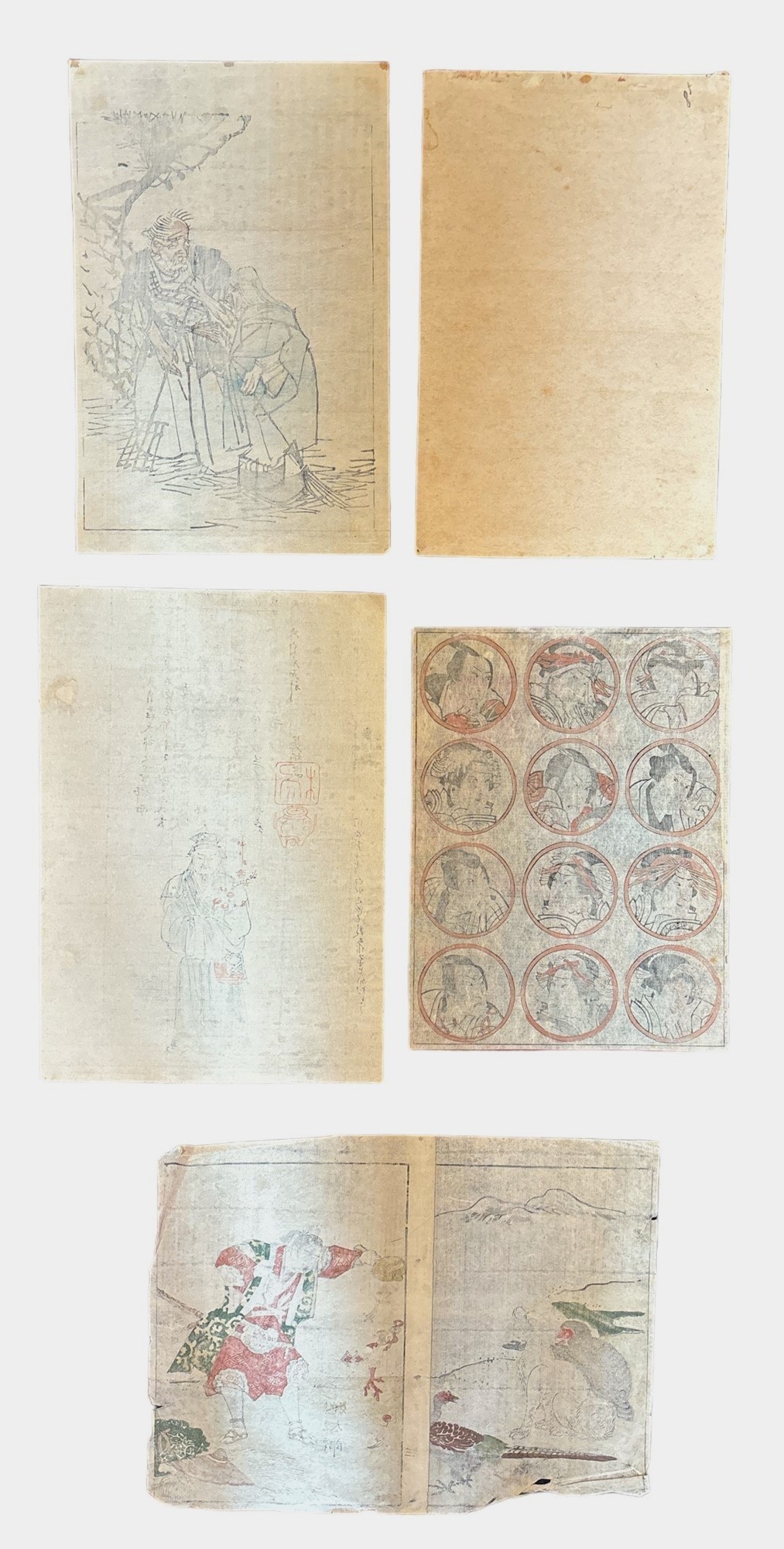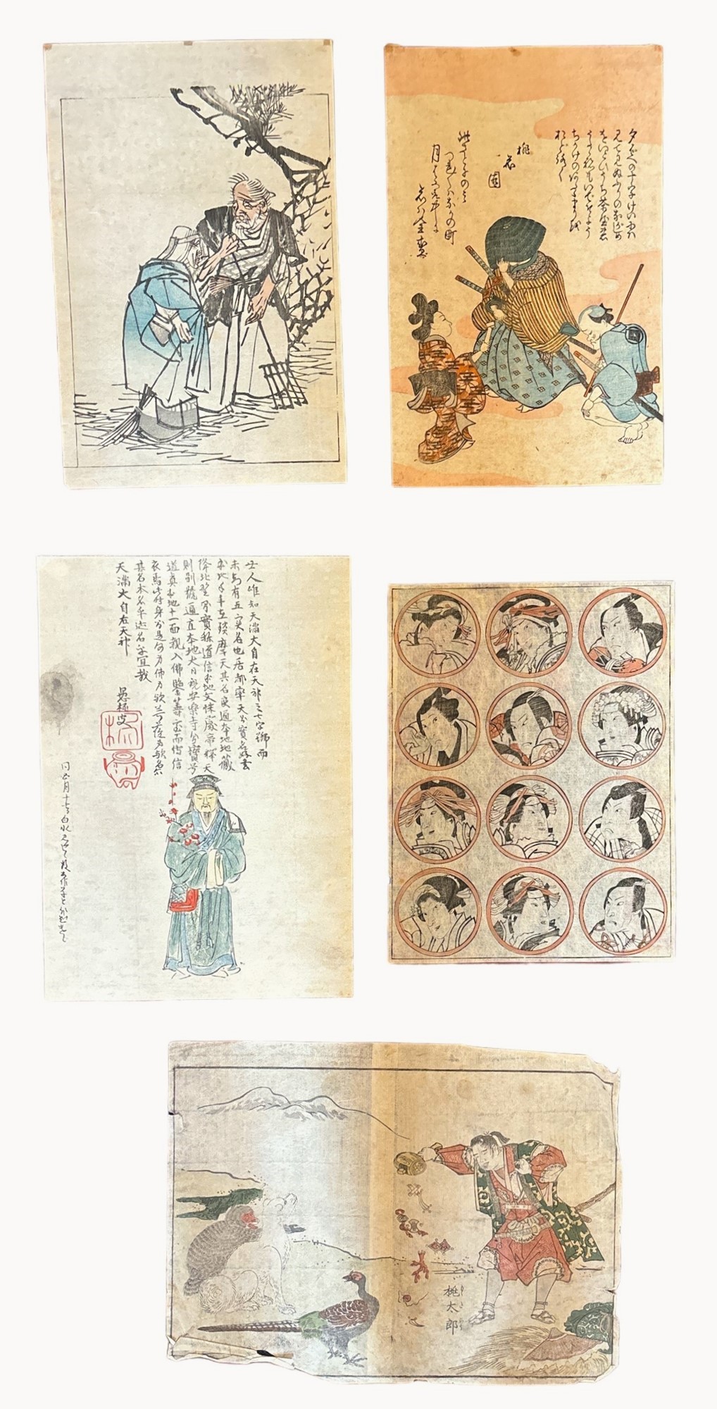 Lotto di 5 fogli giapponesi Giappone, XIX secolo