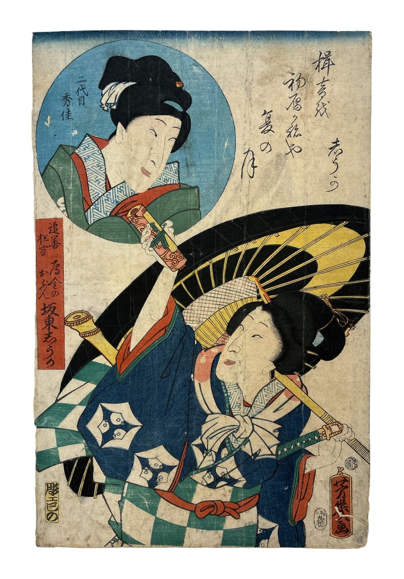 Due guerriere Artista giapponese, XIX secolo xilografia su carta 370 x 245mm...