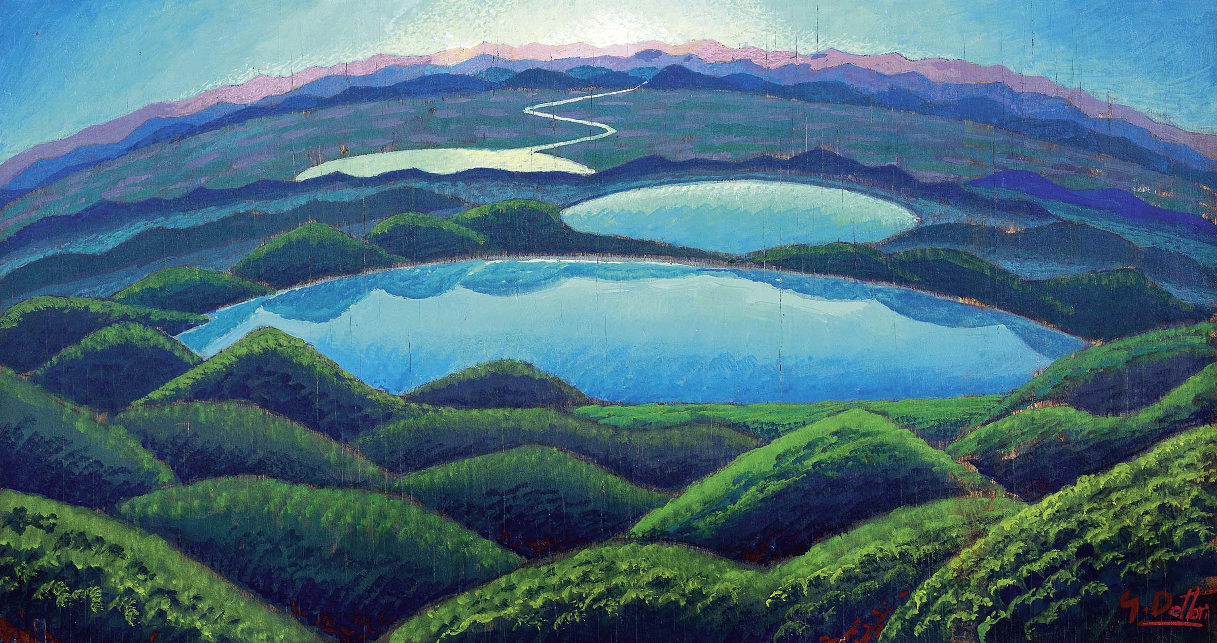 Gerardo Dottori Perugia 1888 - 1977 Bozzetto per Aurora umbra, 1942 Tempera su compensato, cm. 31,2x58,7 Firma in basso a destra: G. Dottori; al verso firma, titolo e data: G. Dottori / Bozzetto per / "Aurora umbra" / (tempera 1942). Certificato su foto Archivi Gerardo Dottori, con n. 2123.