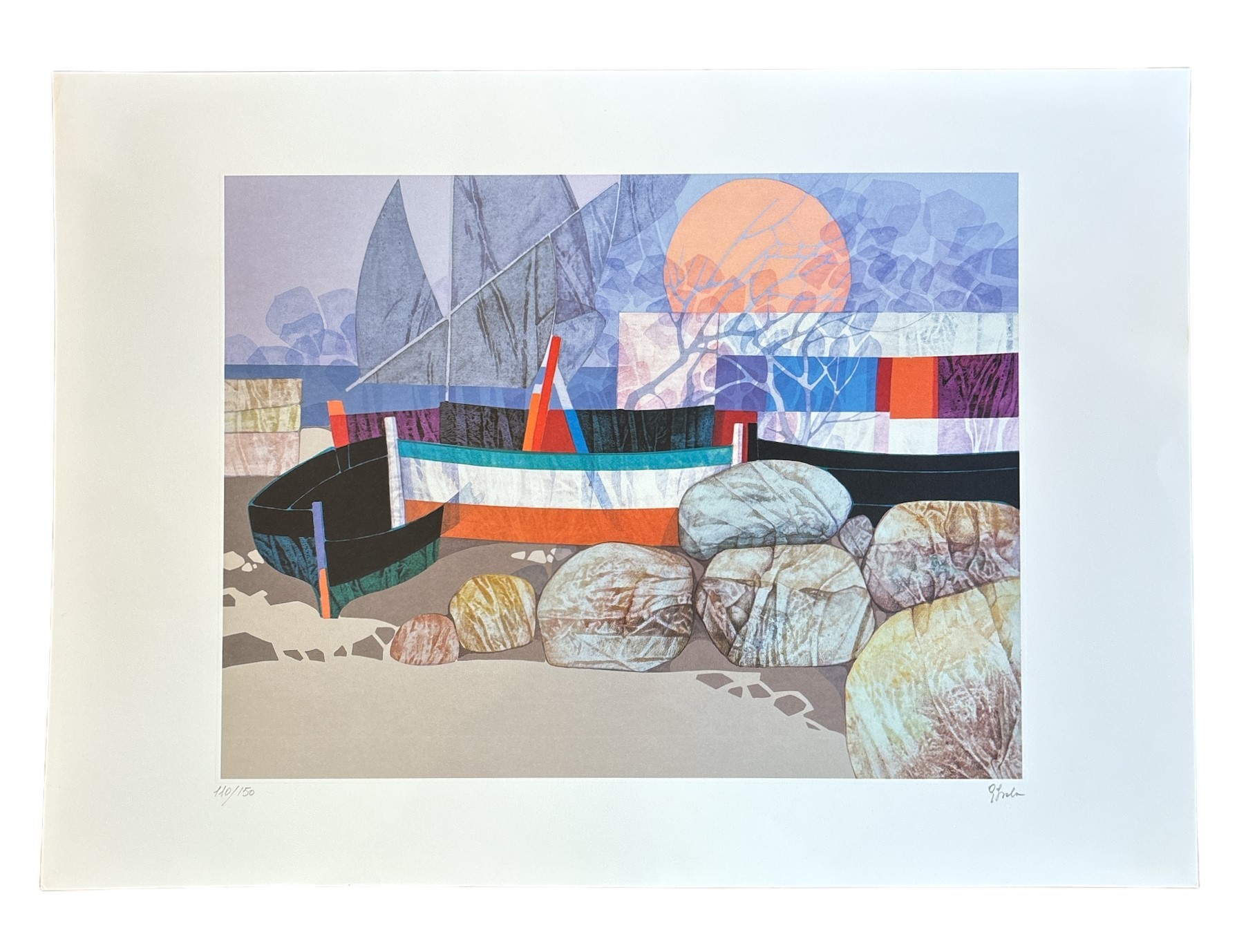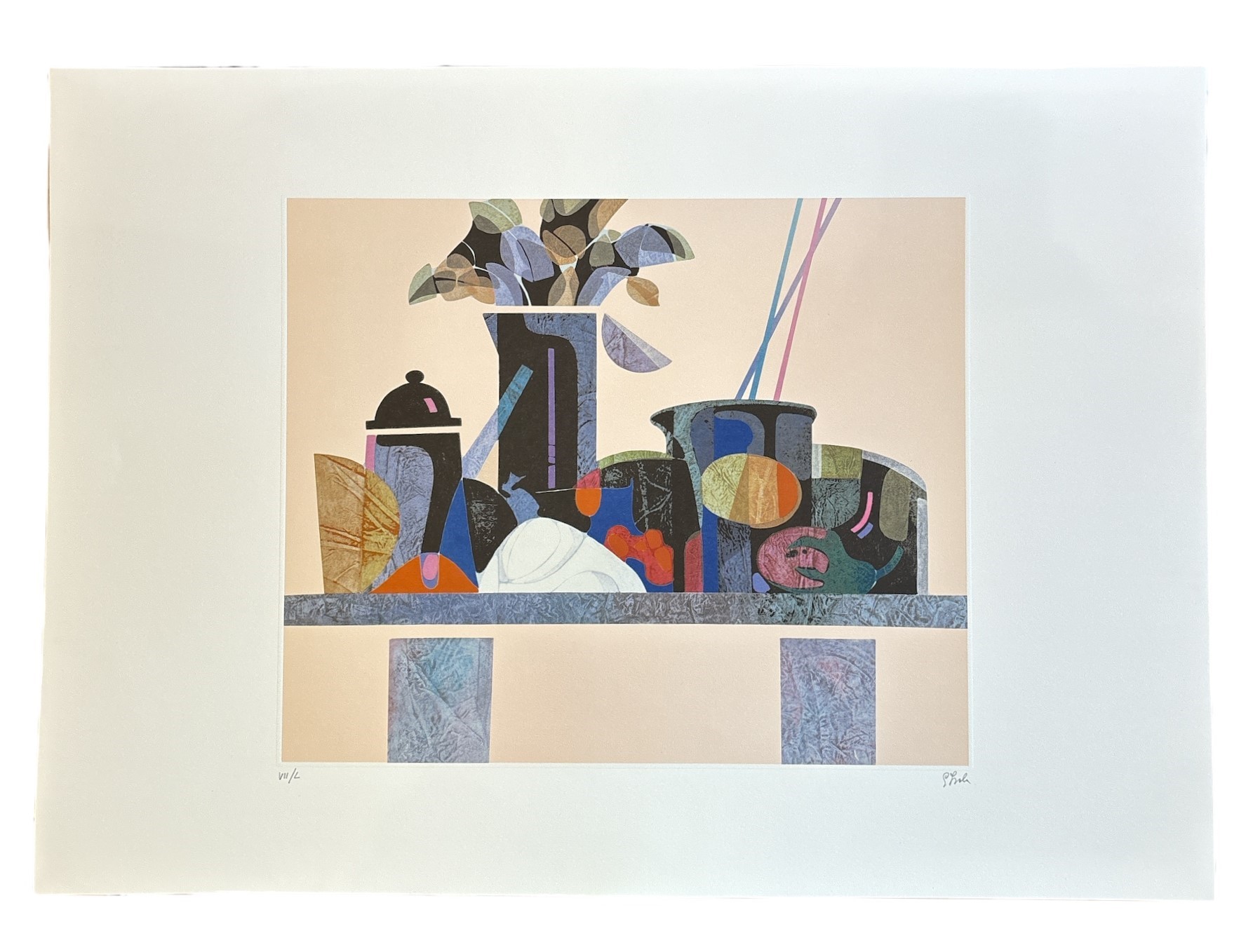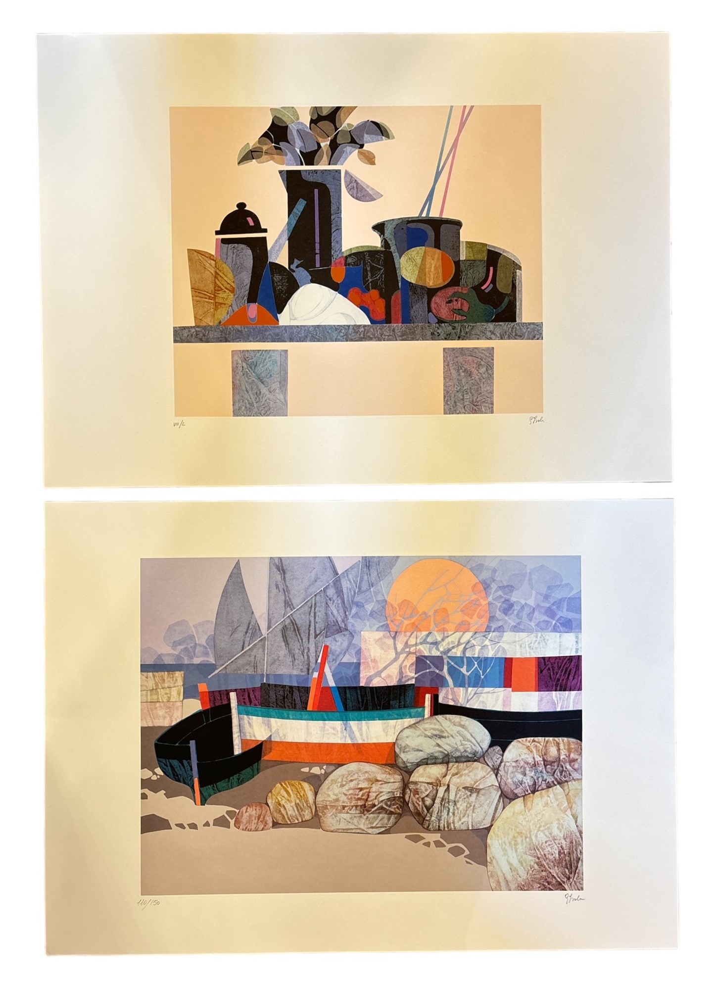 Natura morta, es. n. VII/L, firmata a mano dall'artista, dimensioni: 50 x 70 cm (foglio); Paesaggio marino, es n. 110/150, firmata a mano dall'artista, dimensioni: 50 x 70 cm (foglio).