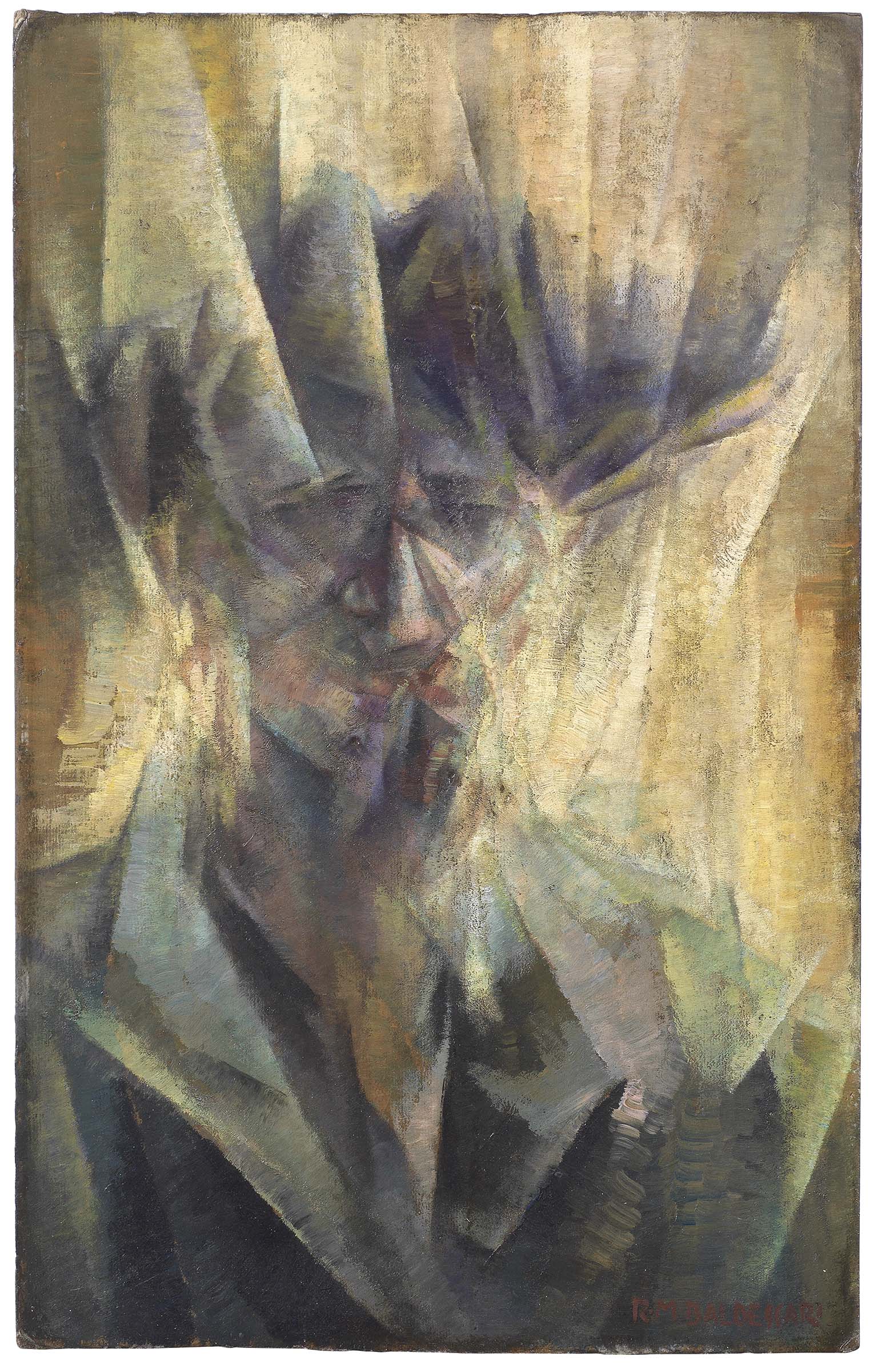 Roberto Marcello (Iras) Baldessari Innsbruck 1894 - Roma 1965 La signorina Dafne (Dafne n. 2), 1916 ca. Olio su cartone, cm. 60,7x38 Firma in basso a destra: R. M. Baldessari. Al verso scritta: [...] Dafne / (6) B: etichetta Alfred Hess Sammlung - Zürich, con dati dell'opera. Storia: Collezione Hess, Zurigo; Collezione privata Perizia di stima con foto Archivio unico per il catalogo delle opere futuriste di Roberto Marcello Baldessari, Rovereto, 24 gennaio 2011. Esposizioni: R.M. Baldessari. Opere futuriste 1914-1923. Quaderno di aggiornamento al Catalogo Ragionato delle Opere Futuriste, a cura di Maurizio Scudiero, Milano, Artecentro, ottobre 2001, cat. p. 17, n. 26, illustrato a colori; Roberto Marcello "Iras" Baldessari. Pittore e incisore, a cura di Maurizio Scudiero, Trento, Palazzo Trentini Mostre, 4 - 30 marzo 2002, cat. p. 29, illustrato.