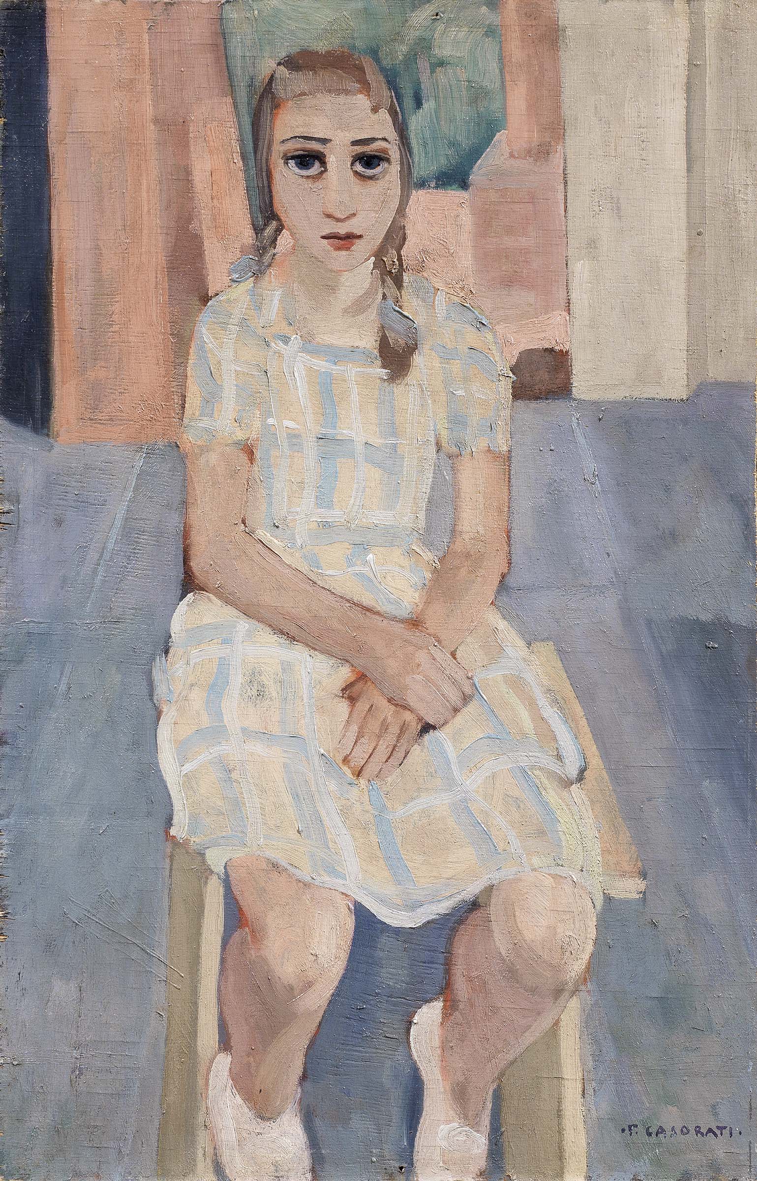 Felice Casorati Novara 1883 - Torino 1963 Fanciulla seduta, 1933 Olio su tavola, cm. 49x32 Firma in basso a destra: F. Casorati. Certificato su foto Archivio Casorati, Torino, 29/9/2012, con n. 1446.