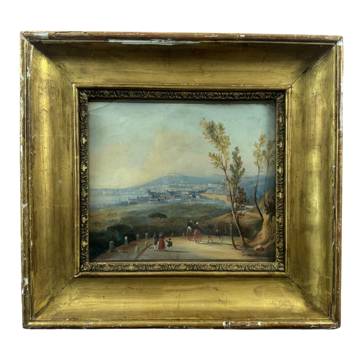 Dipinto olio su cartoncino, periodo inizio XIX secolo, scuola Italiana raffigurante Veduta di San Martino da Capodimonte.