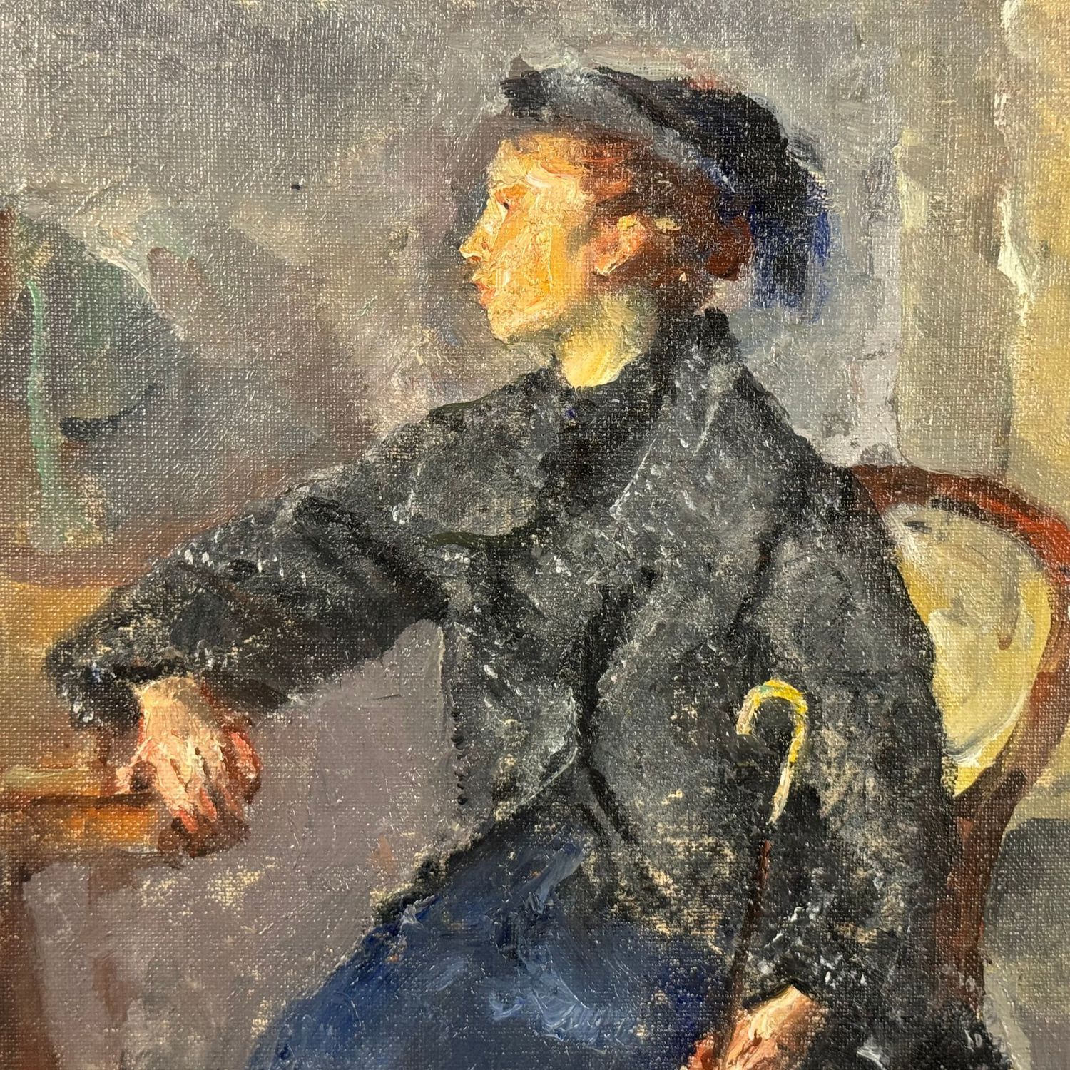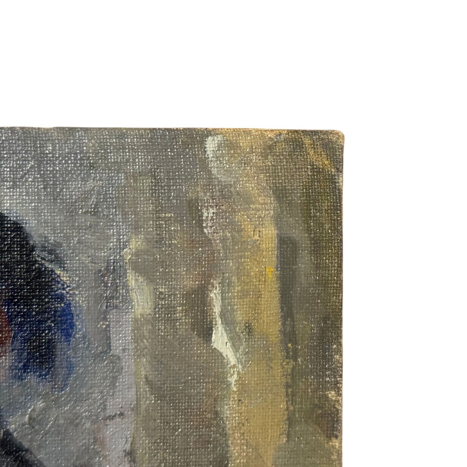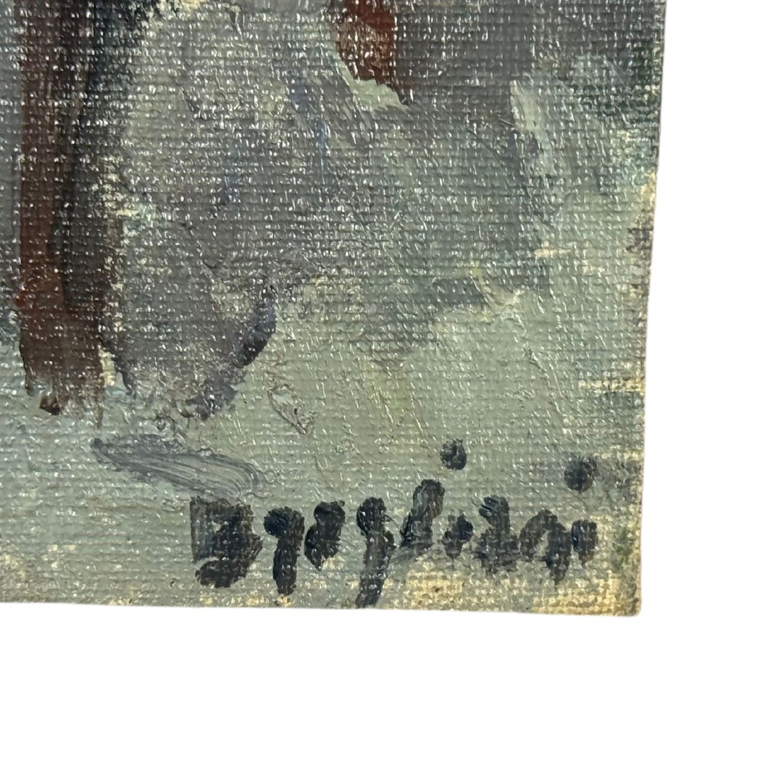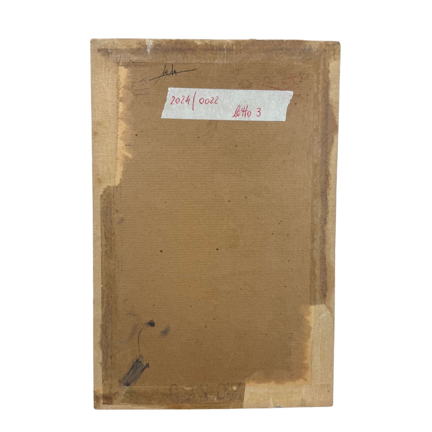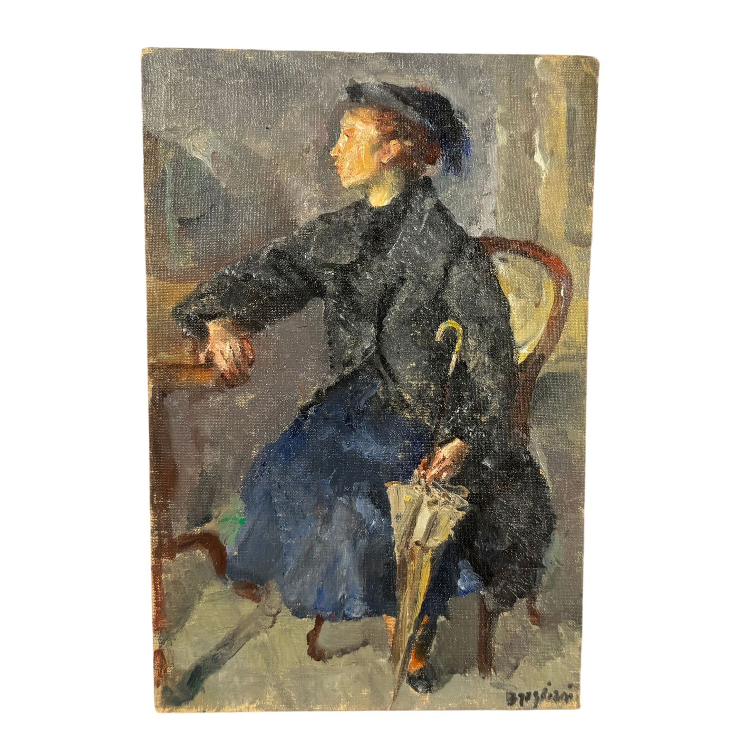 Dipinto olio su cartoncino, periodo XX secolo scuola Italiana, raffigurante Donna con ombrellino.