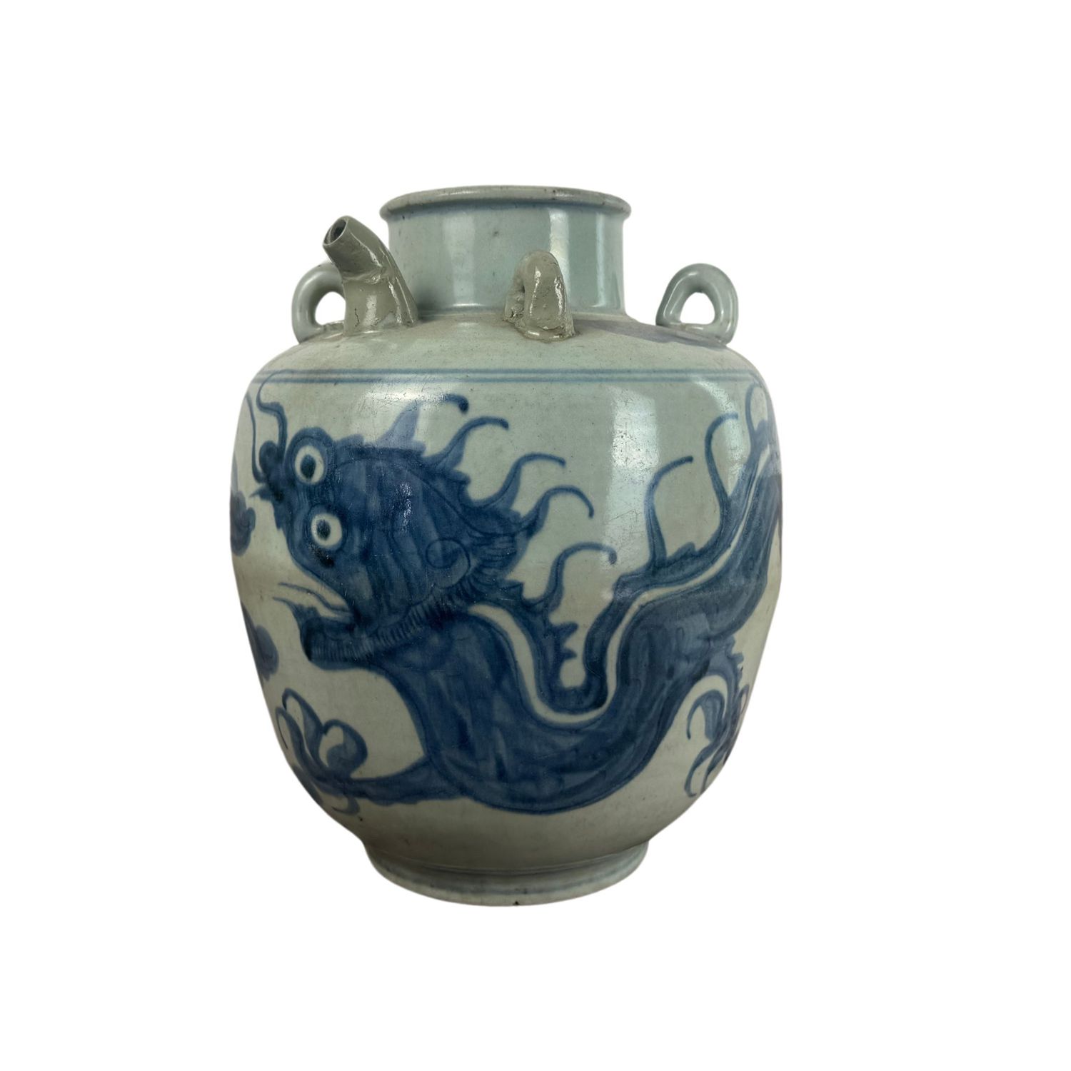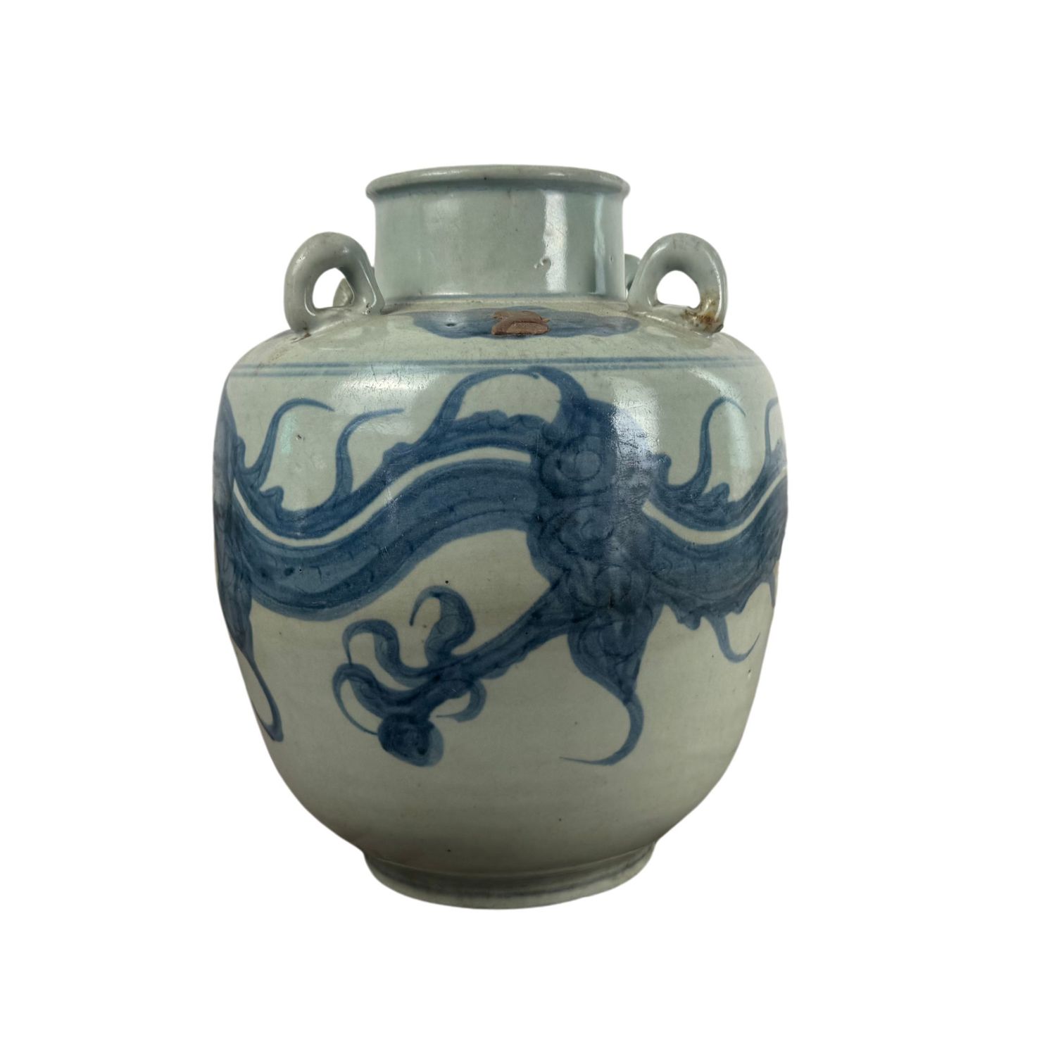 Antico vaso cinese in maiolica. Dimensioni: 33x26 cm Lievi difetti.