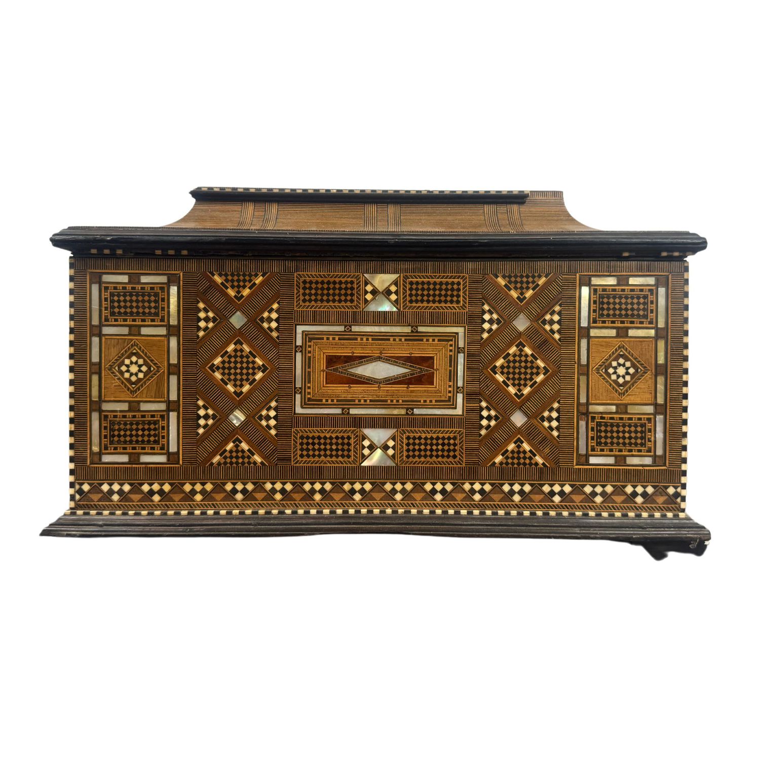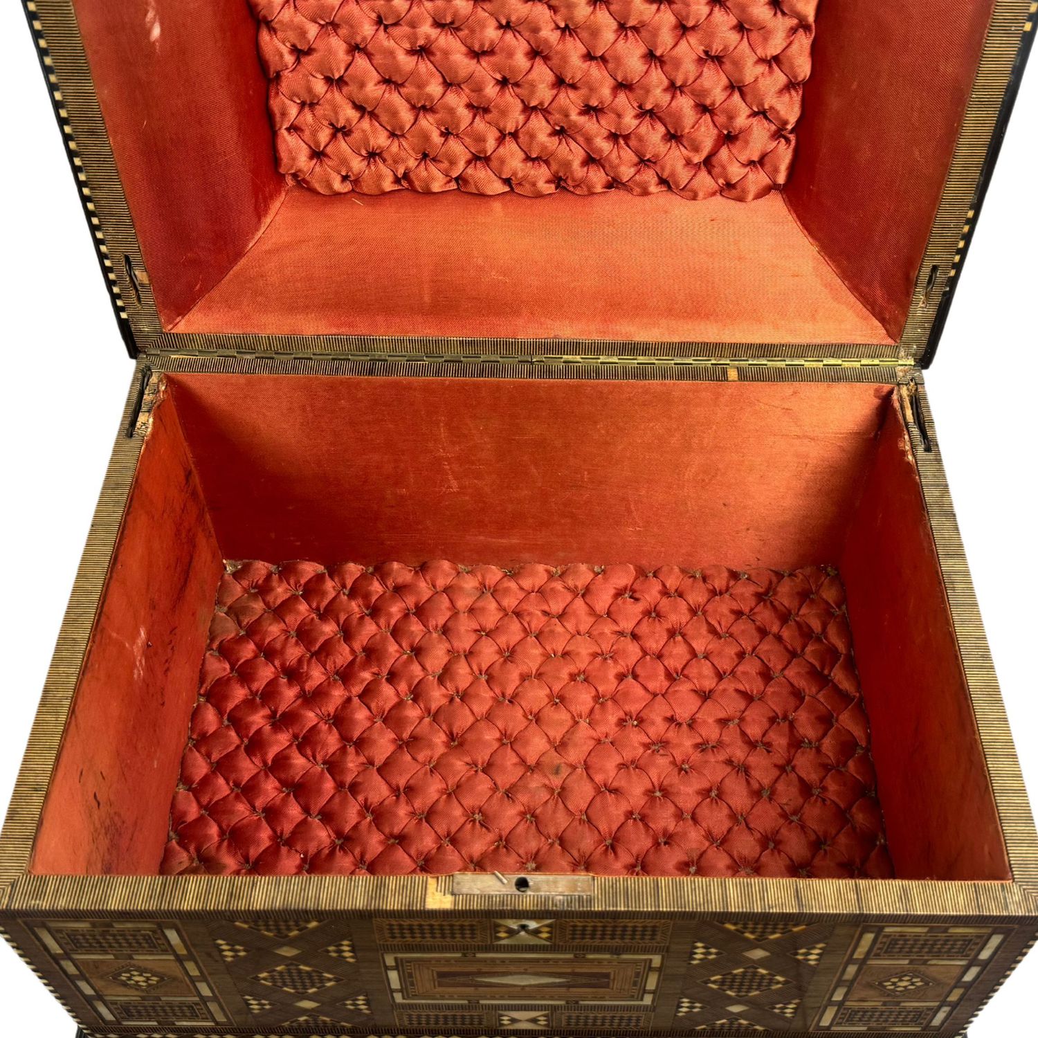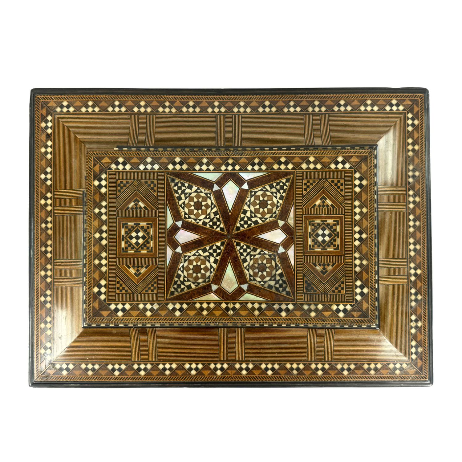 Cofanetto interamente intarsiato con vari tipi di legni, periodo XIX secolo.