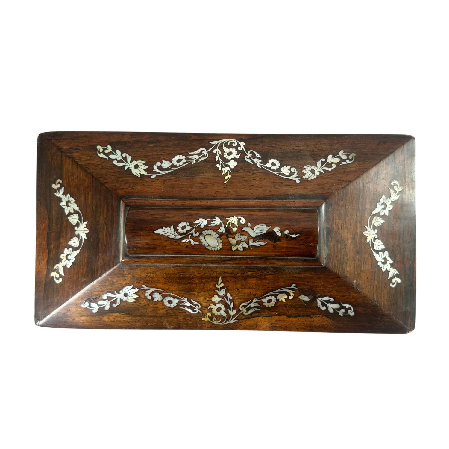 Cofanetto in legno con intarsi in Madre perla, periodo XIX secolo.