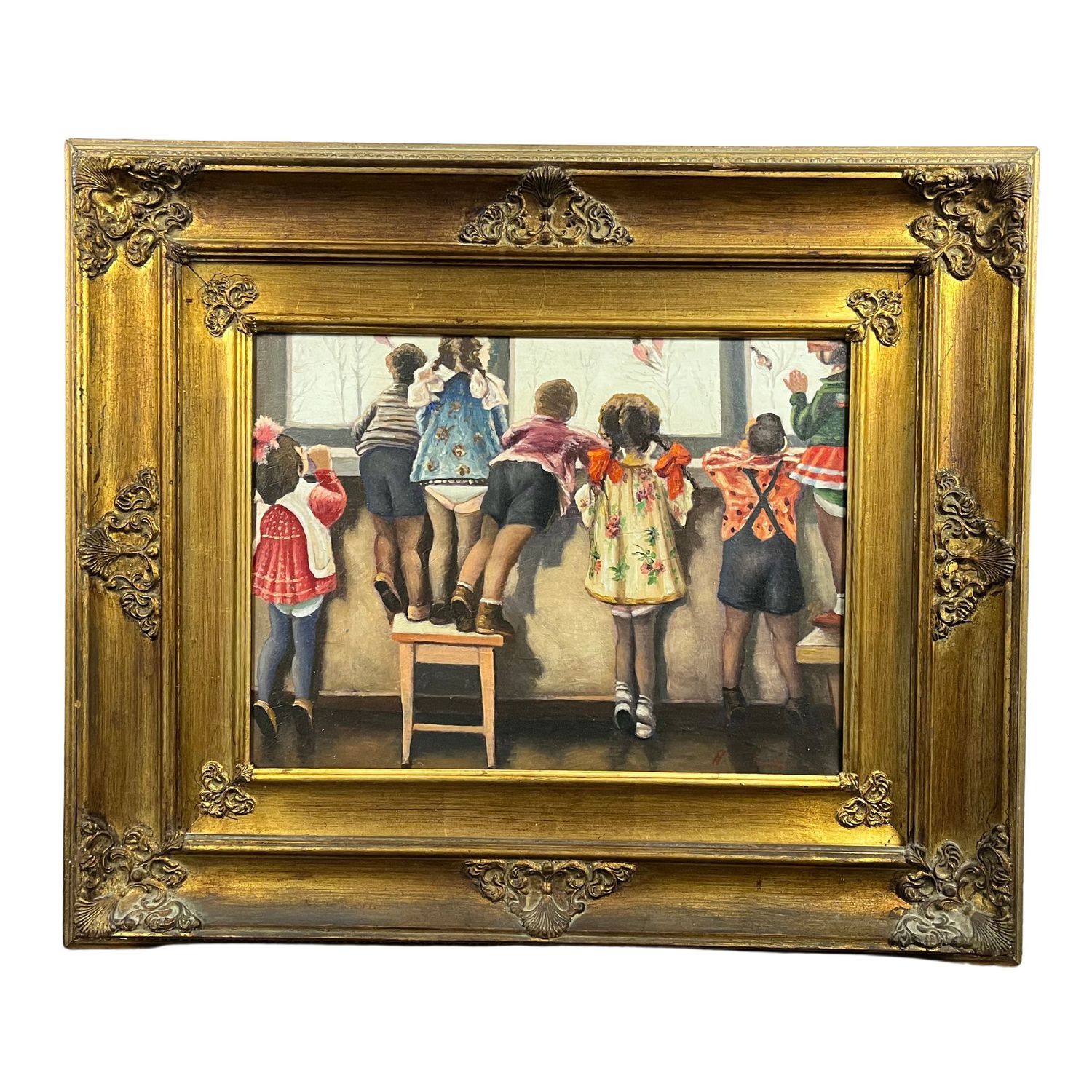 Dipinto olio su tela, periodo XX secolo scuola Europea, raffigurante La prima neve.