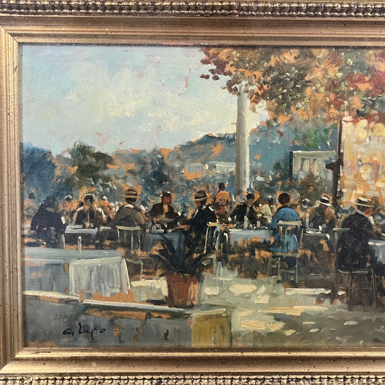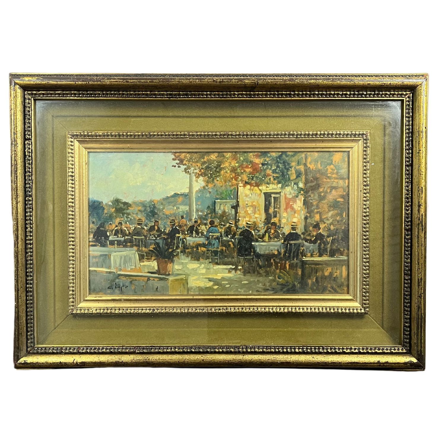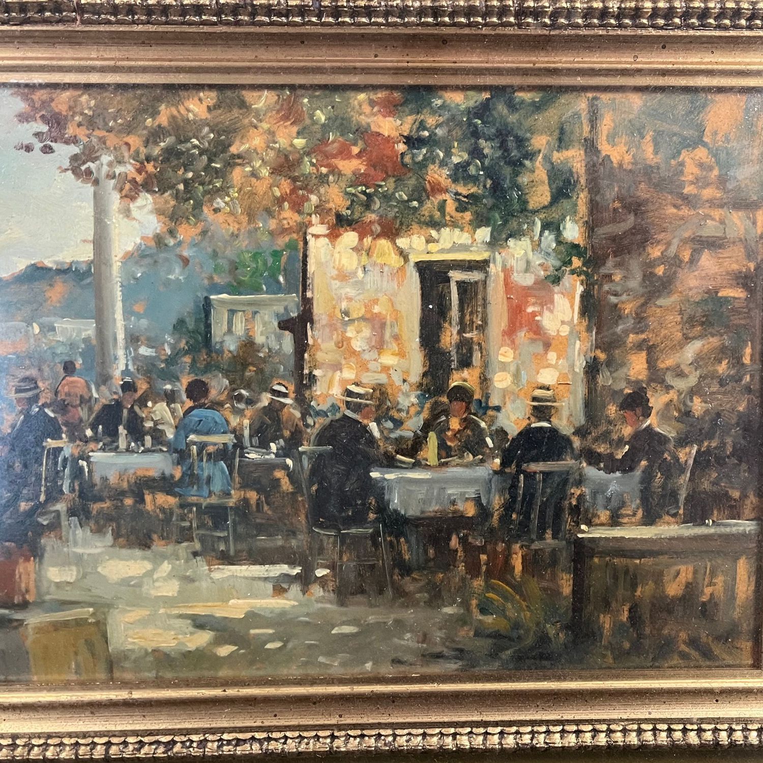 Dipinto olio su pannello, scuola Italiana periodo XX secolo, raffigurante La Trattoria.