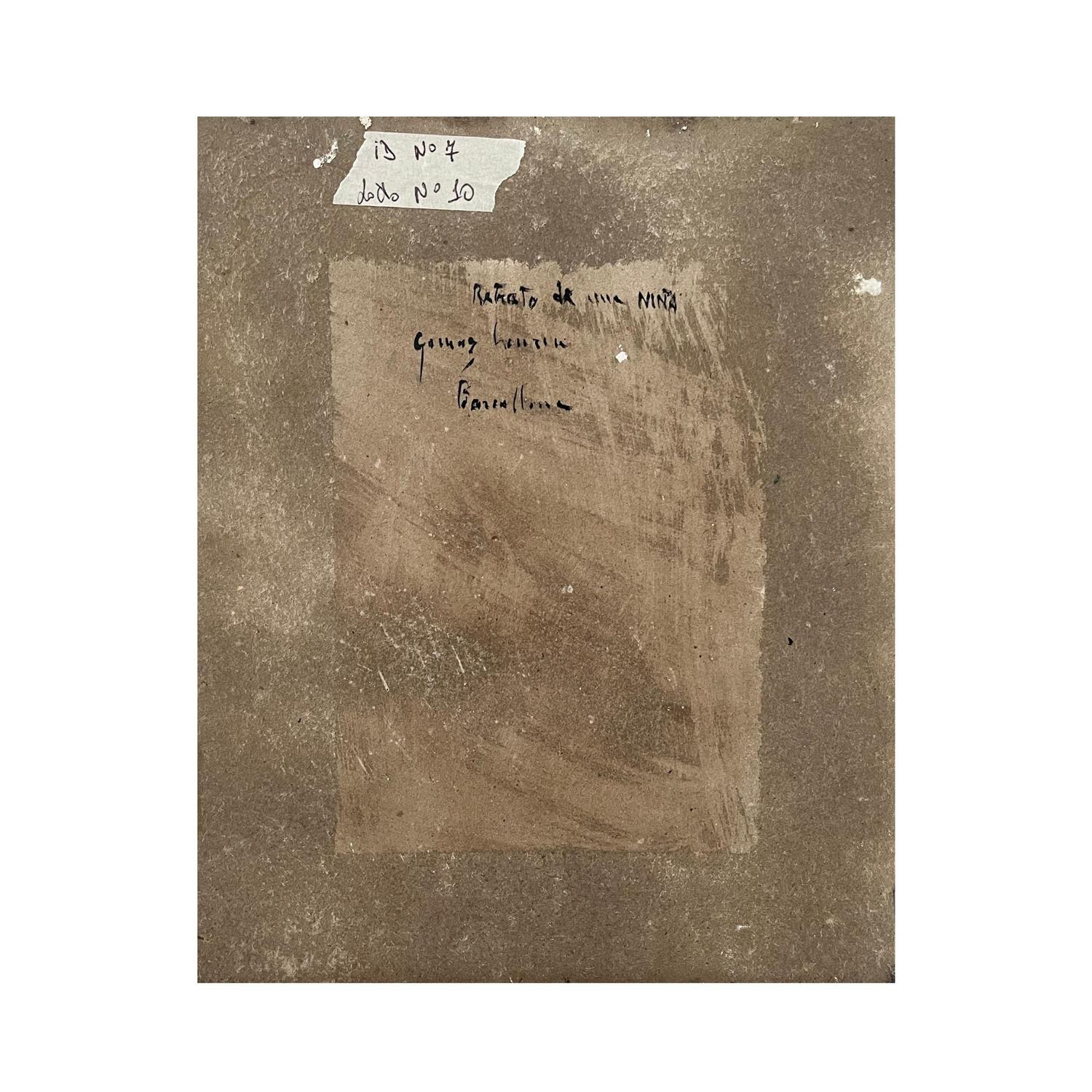 Dipinto olio su cartoncino raffigurante Ritratto di fanciulla, scuola Spagnola. XX secolo.