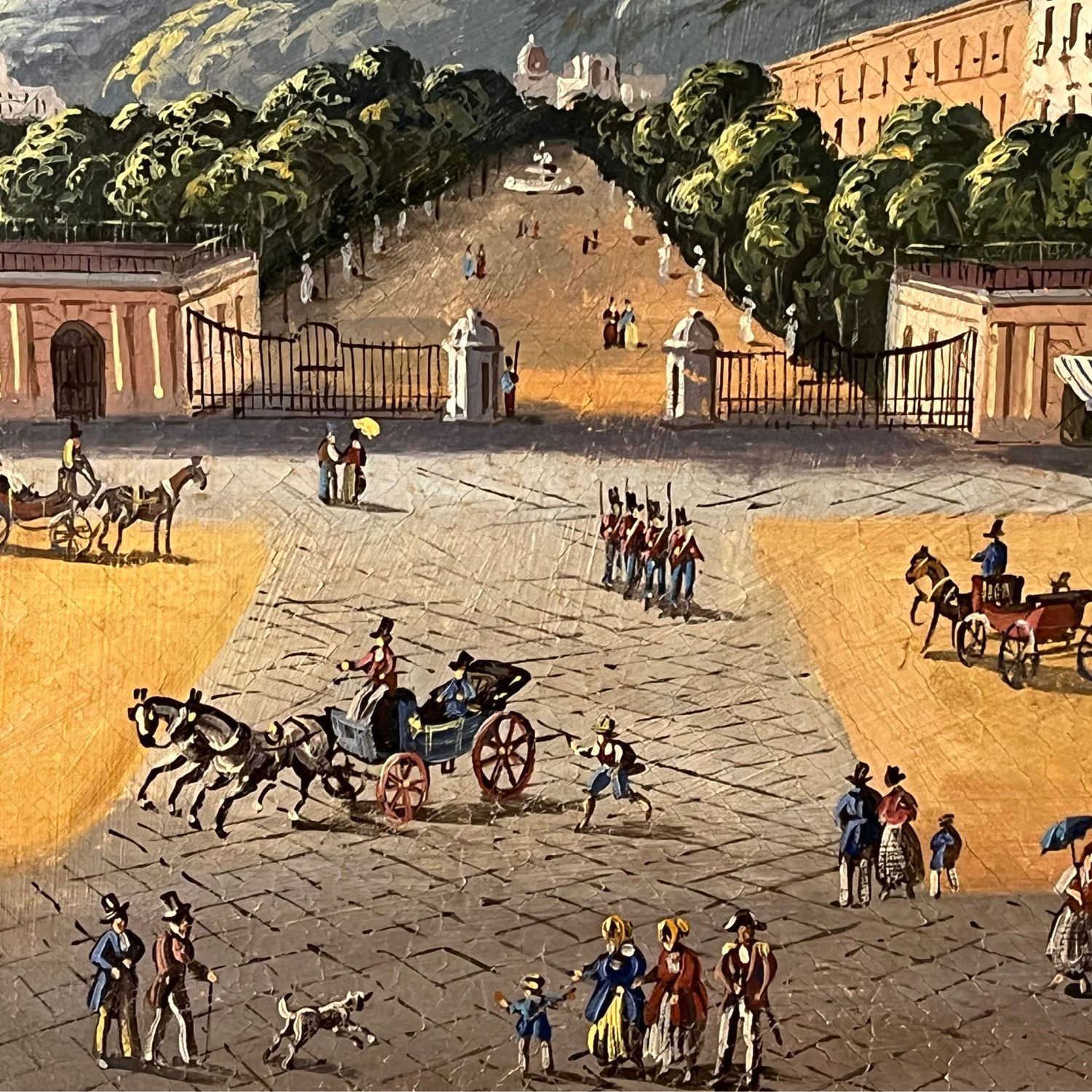Dipinto olio su tela, raffigurante Veduta della Villa Reale a Napoli, XX secolo.