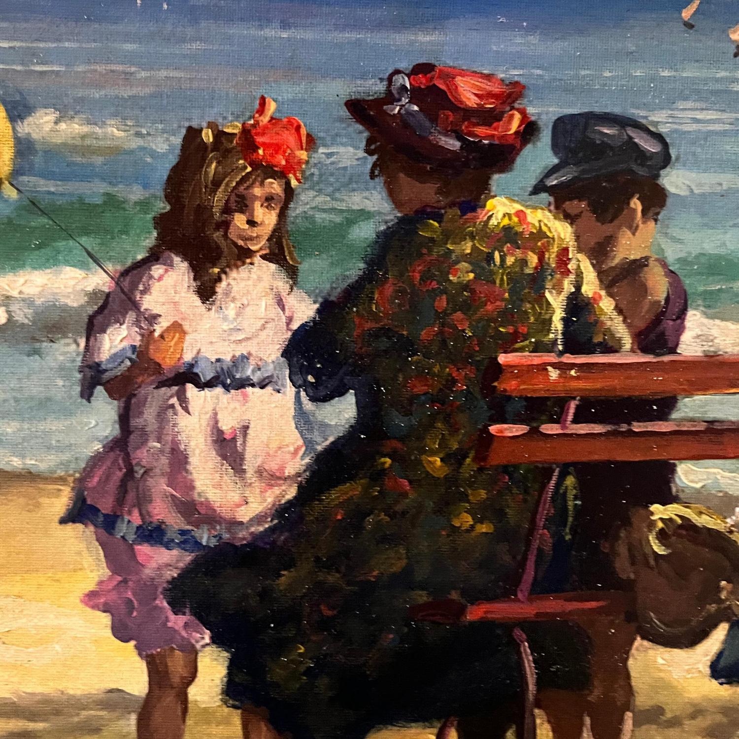 Dipinto olio su tavola, raffigurante Giornata al mare, periodo XX secolo.