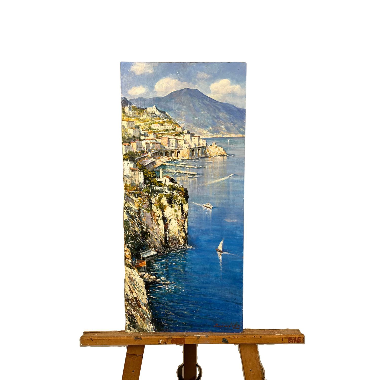 Dipinto olio su pannello, raffigurante Amalfi. Periodo 2012.